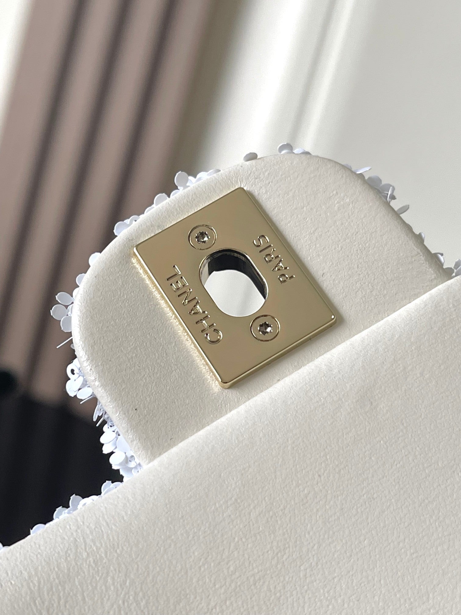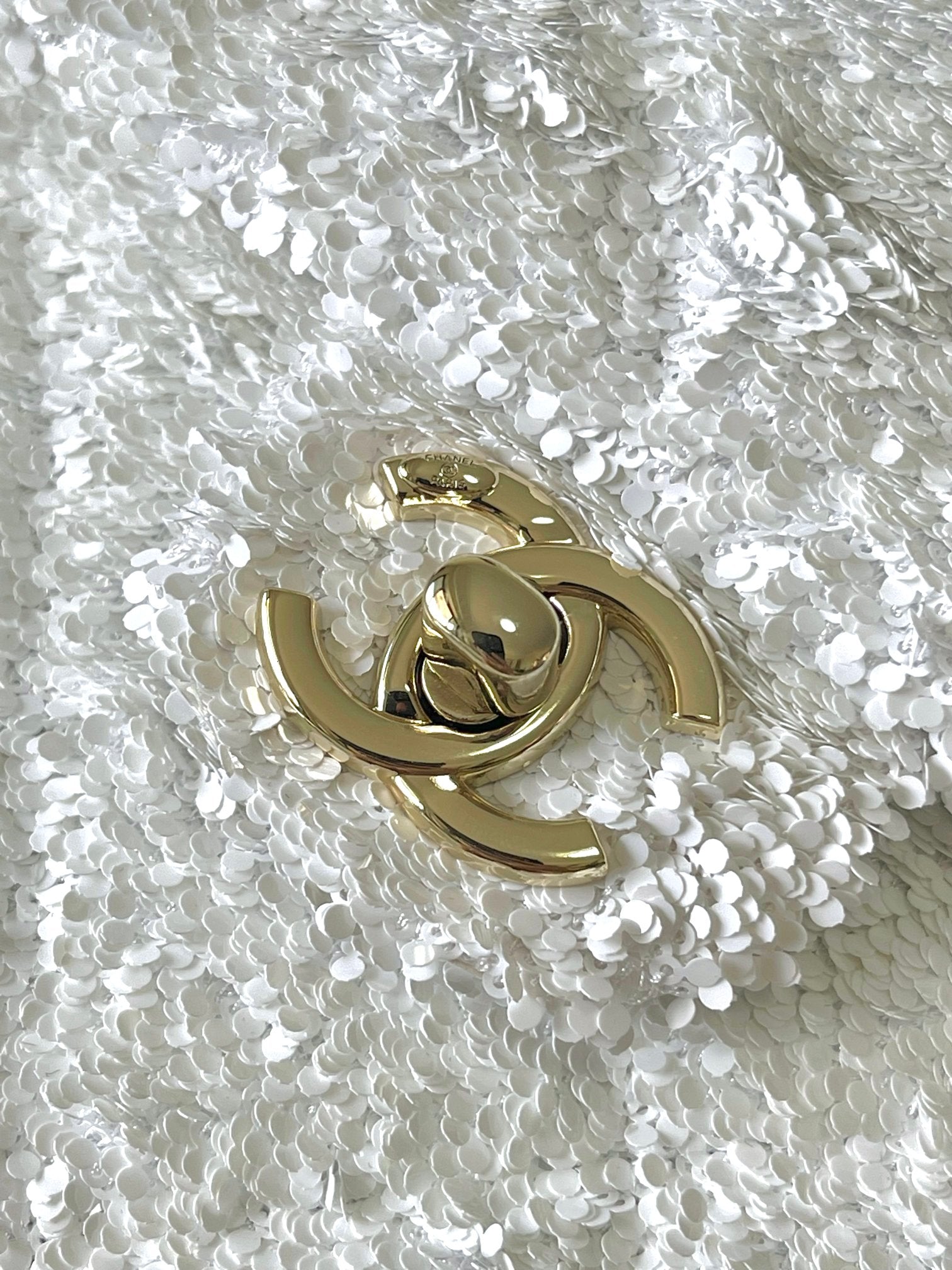 Chanel 25 Sequin Embroidered 21cm Bag White Leather Sequins 286172