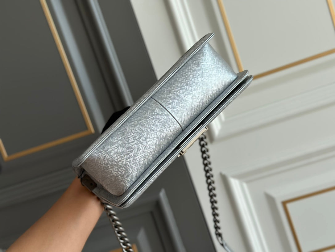 boy medium 25 grey quilted caviar ruthenium hardware