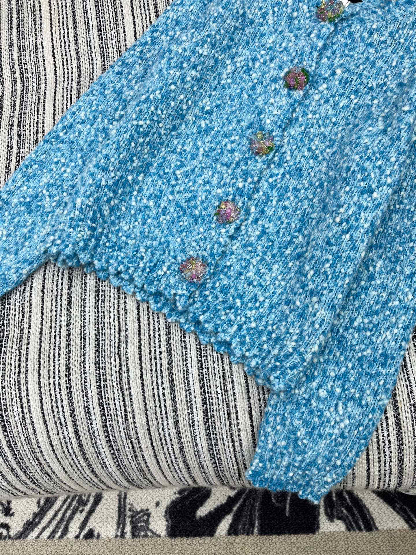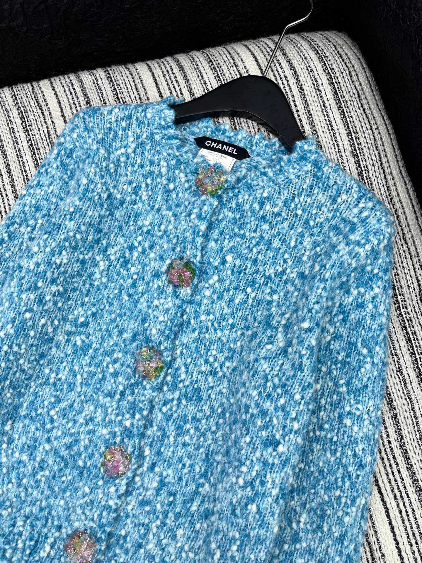 CC 2025 Jacket with Large Rhinestone Button Blue Wool 325884