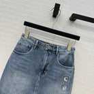 CC 25 Embroidered Short Skirt Blue Denim Cotton