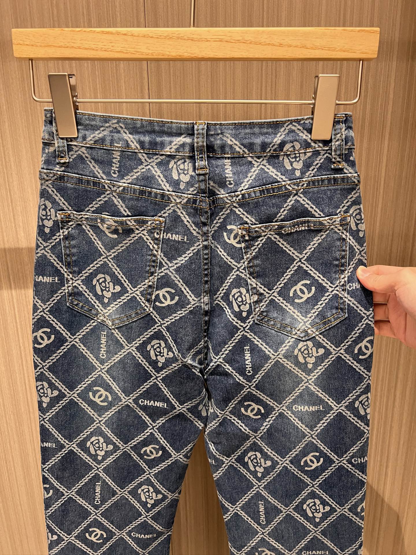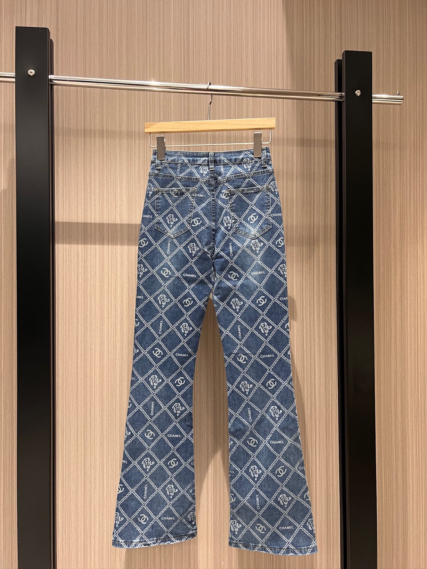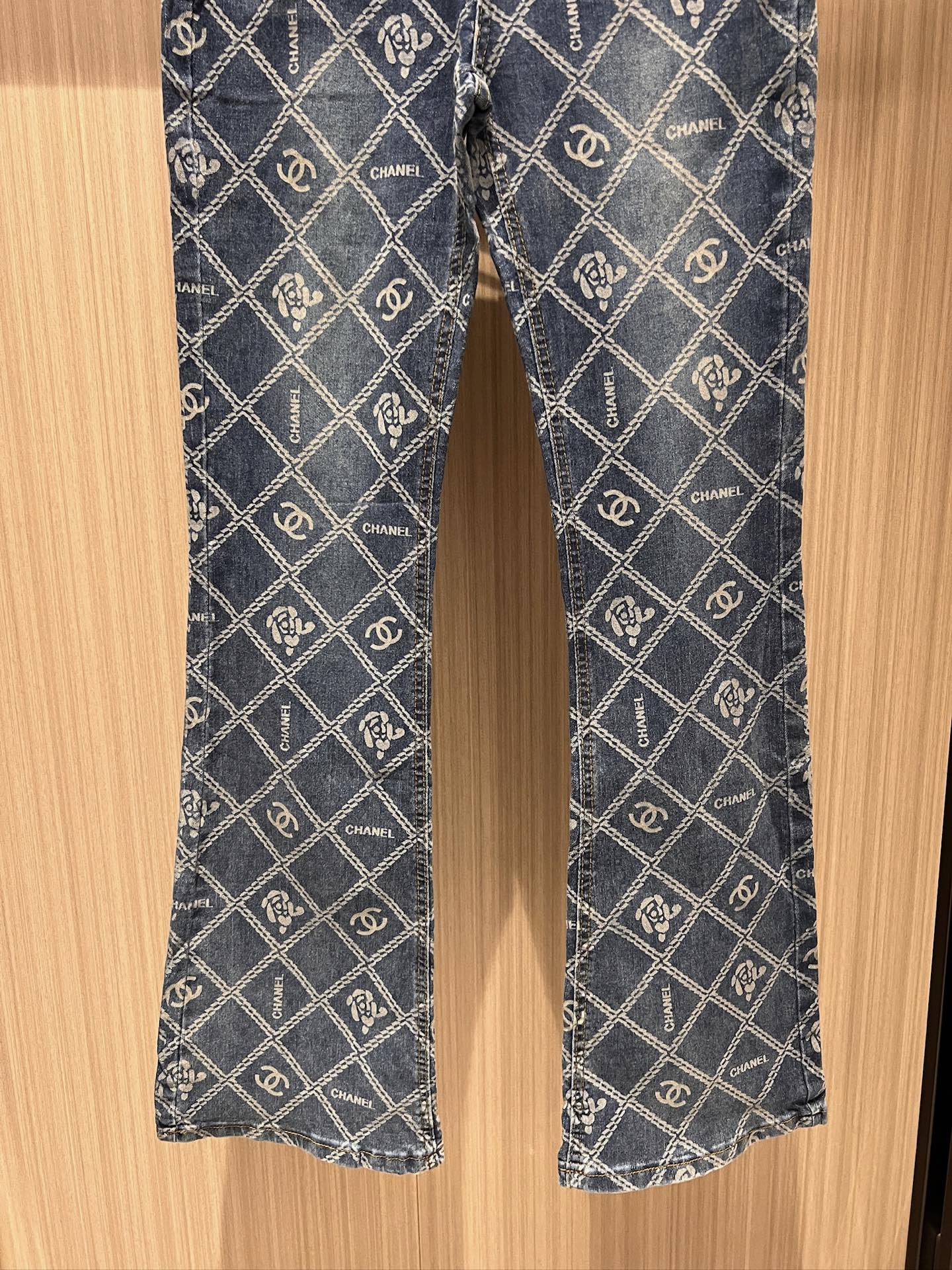 CC Diamond Double C Print Flared Jeans Blue Cotton