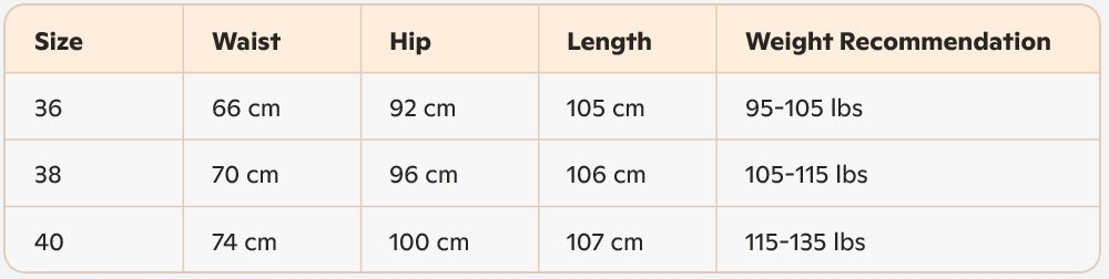 Size: 36, 38, 40