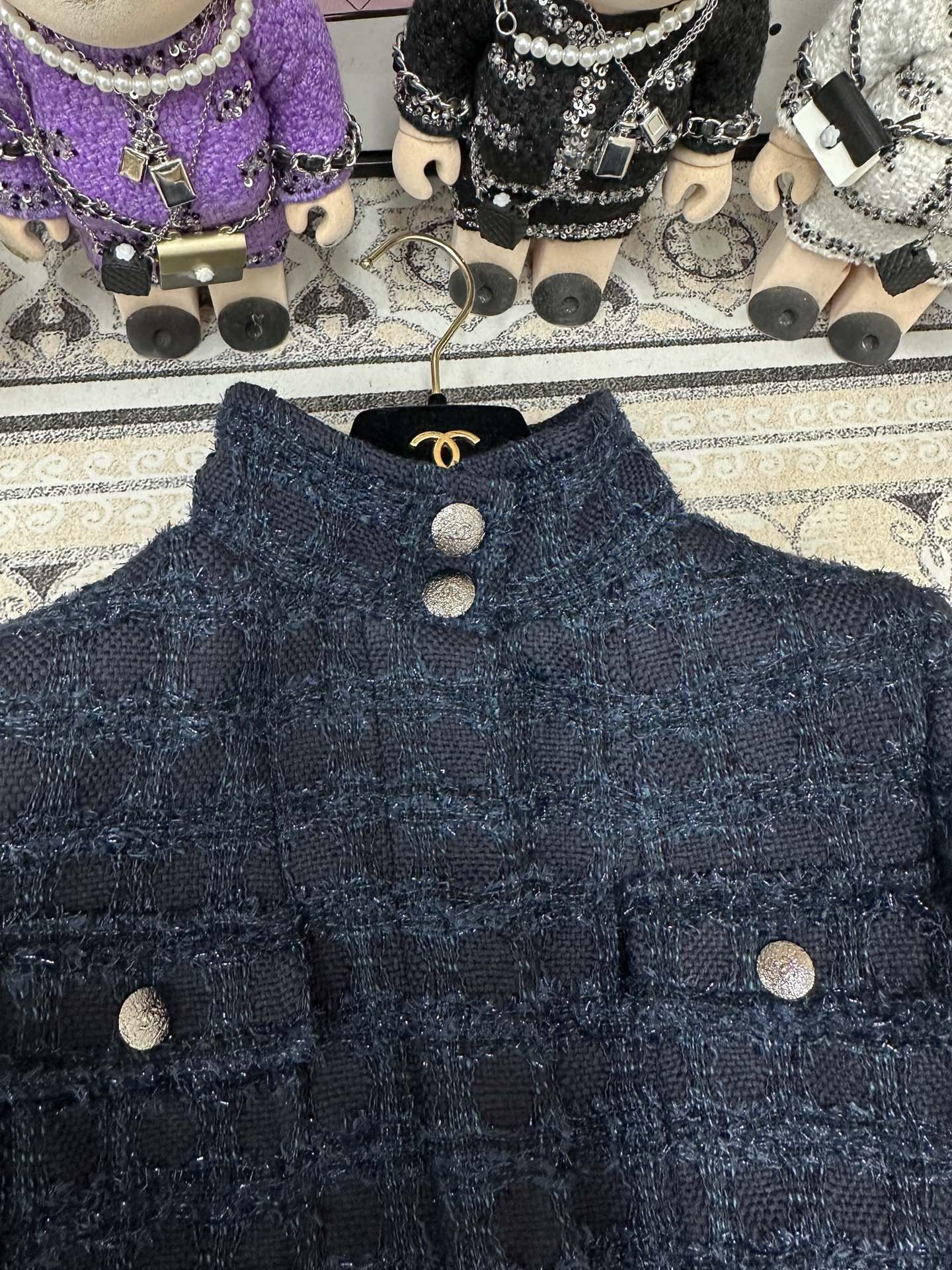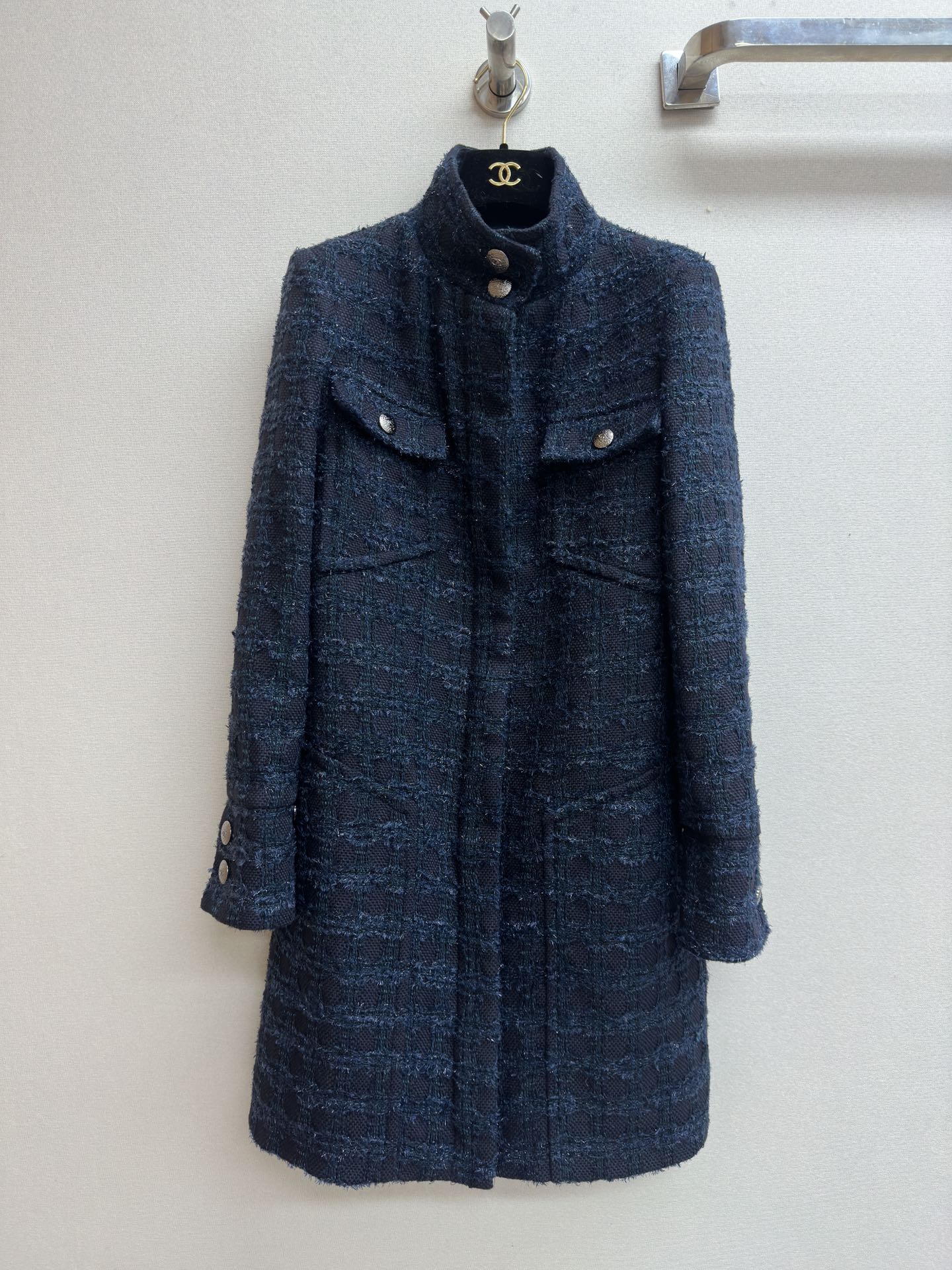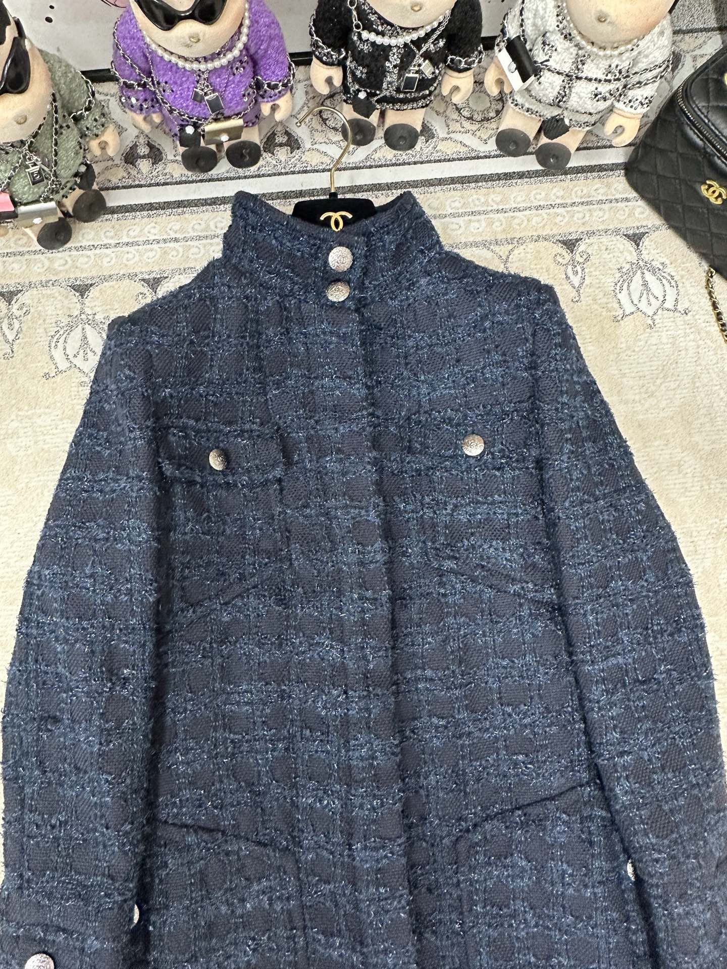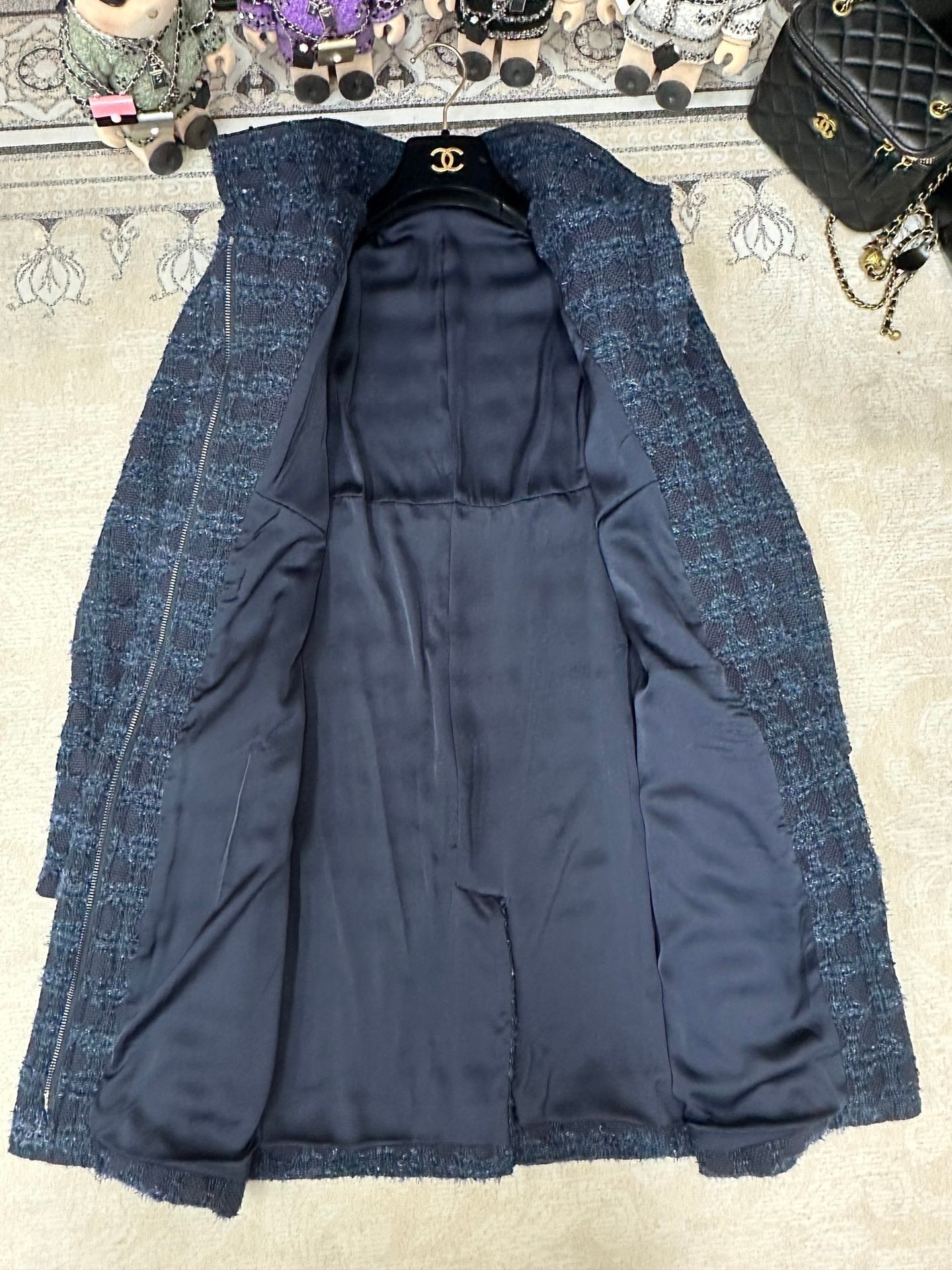 CC Tweed Dress Black Blue Acrylique Laine Wool 251956