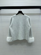 Chanel 2025 Fur-sleeved Crew Neck Cardigan Light Gray Polyester Wool 319594