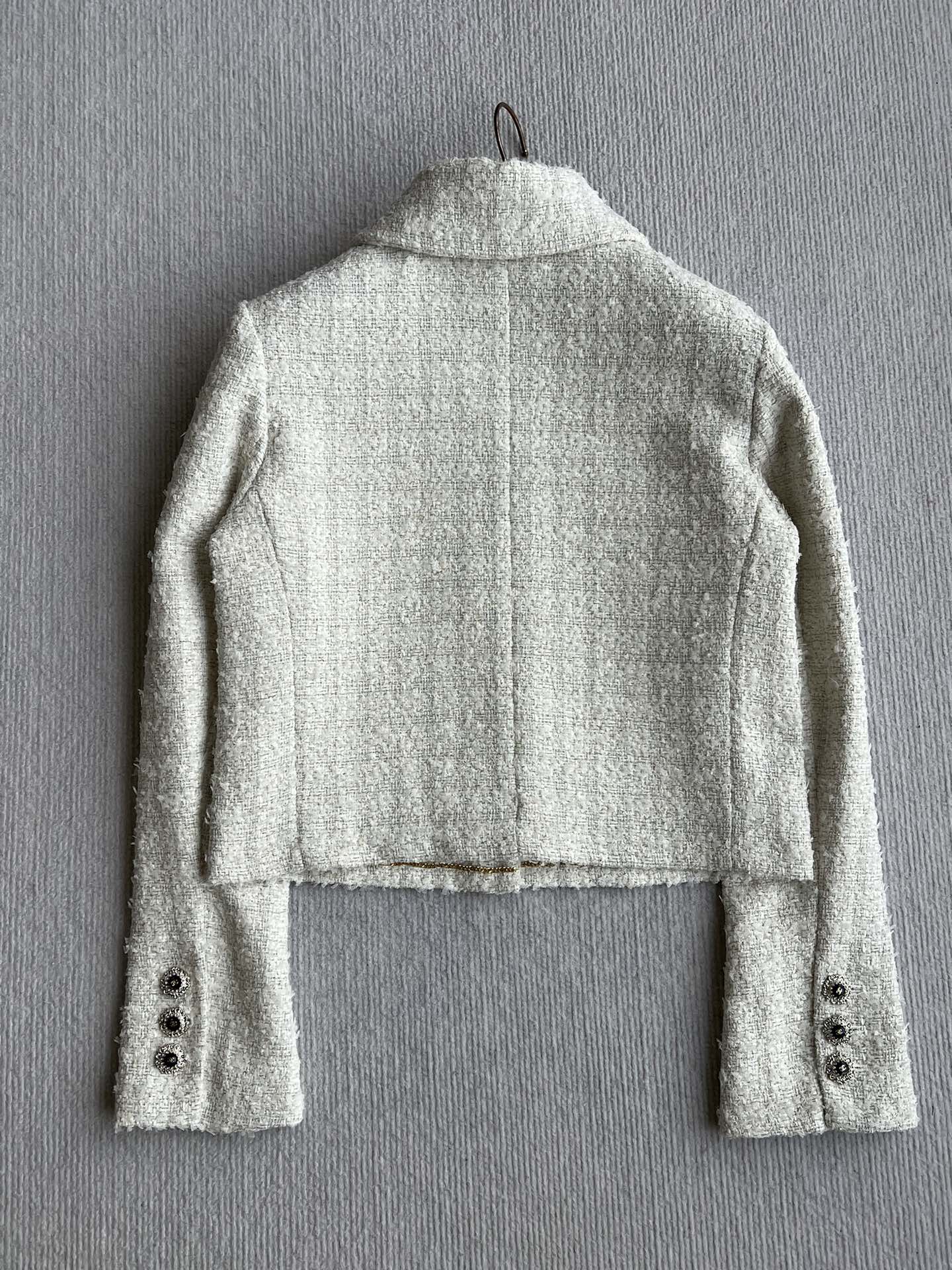 Chanel 2025 White Woven Tweed Fabric Jacket 318544