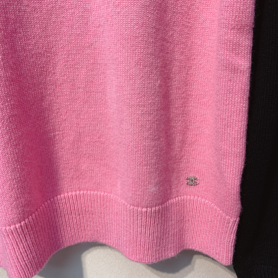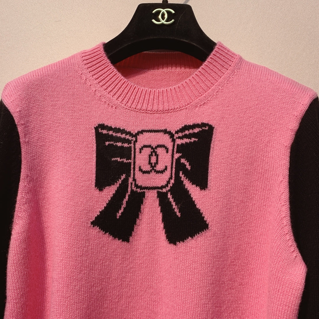 Chanel 25 Bow Sweater Pink Black Wool 317420