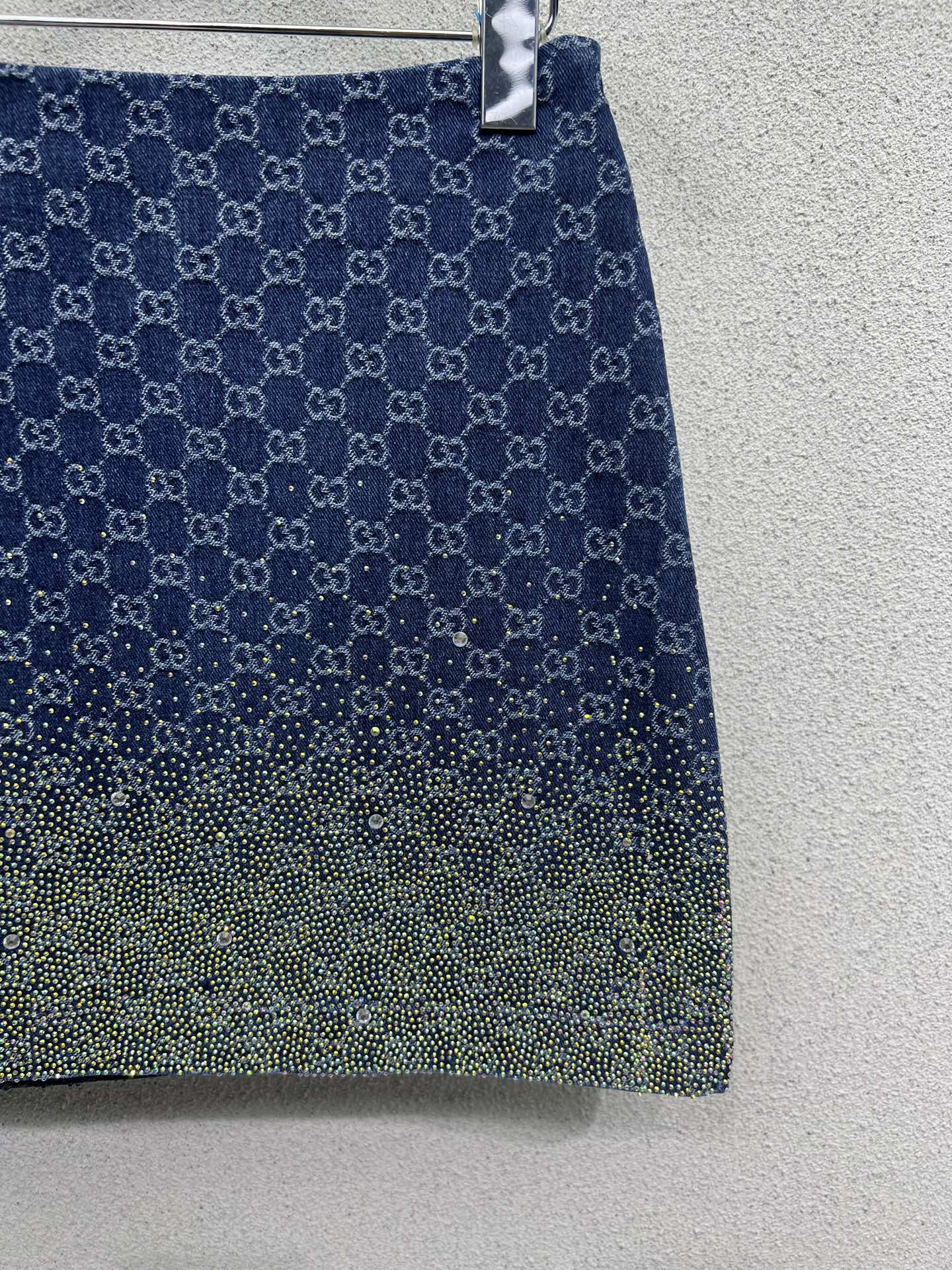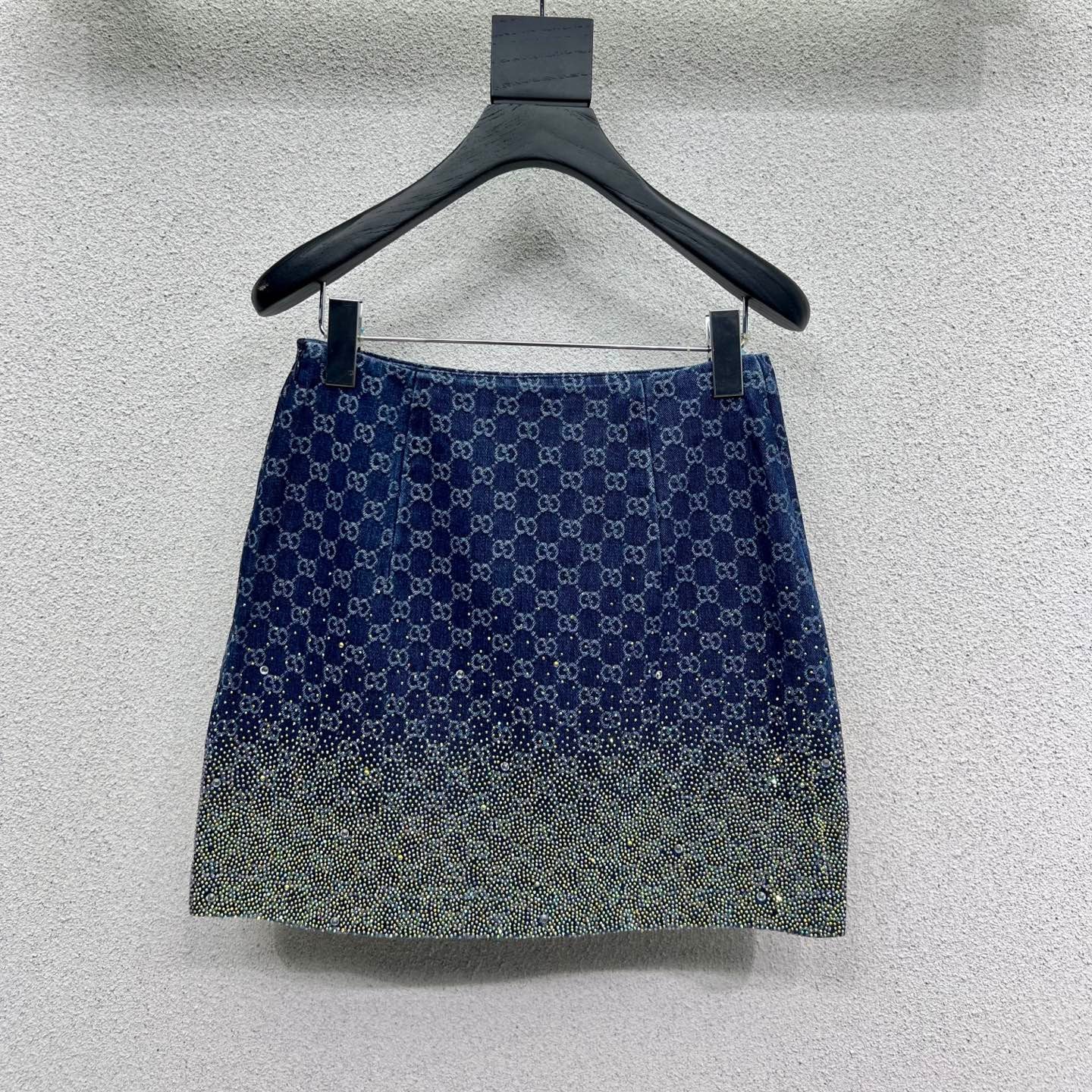 GG Blue Monogram Crystal Embellished Mini Skirt