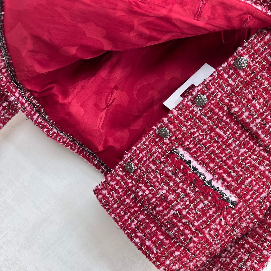 Chanel 2025 Rhinestone Chain Jacket Pink Woven Tweed Fabric 319510