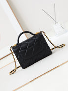 24a flap bag with top handle 18cm black lambskin gold hardware