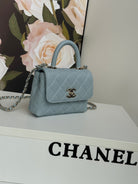 CC 24K Coco Handle Nano 14.5cm Cloud Blue Grained Calfskin Gold Hardware