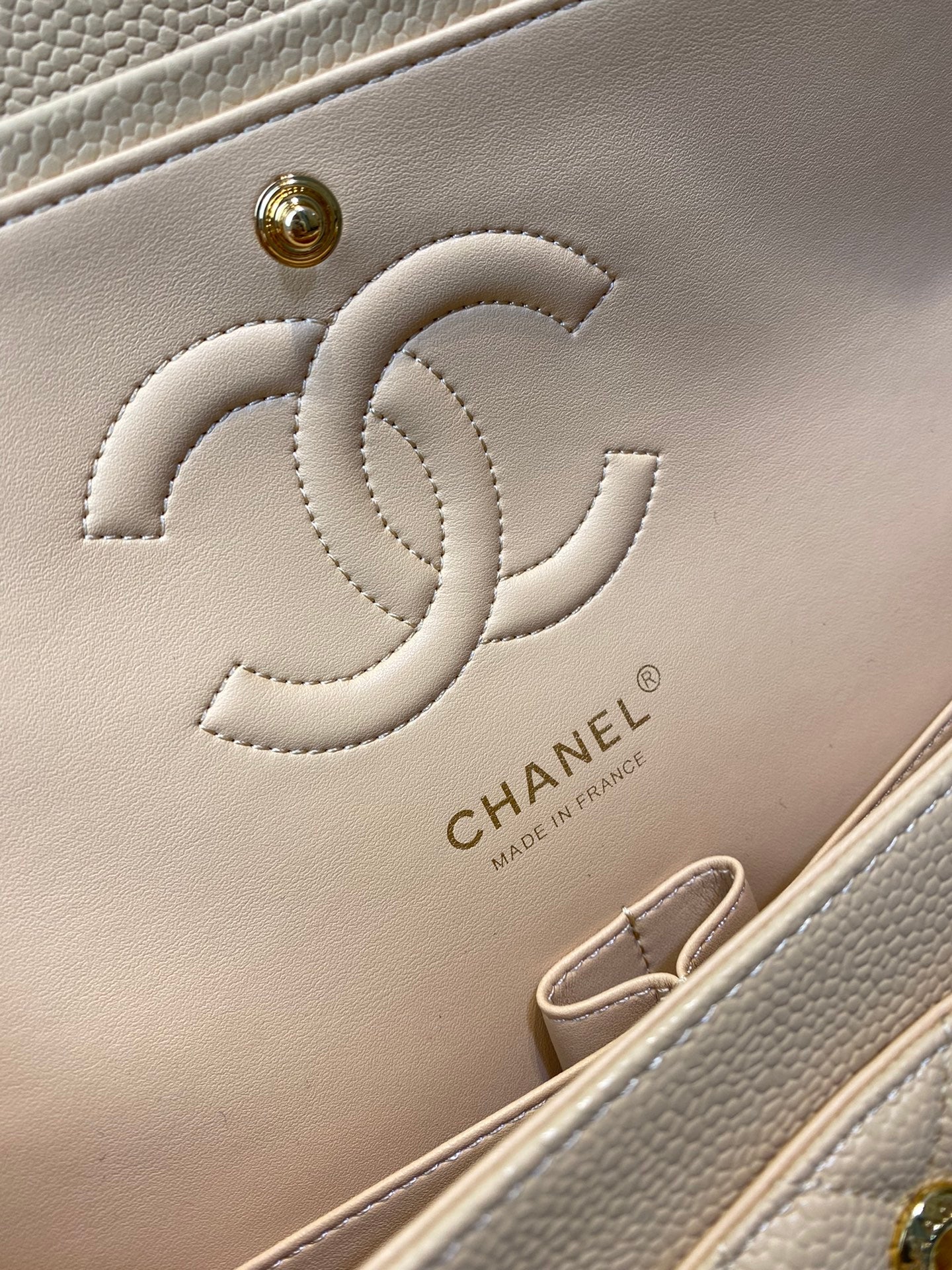 FLAP BAG 25CM GOLD HARDWARE BEIGE CAVIAR