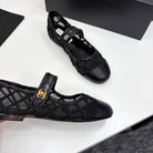 CC 25 Mary Jane White Black Mesh Calfskin