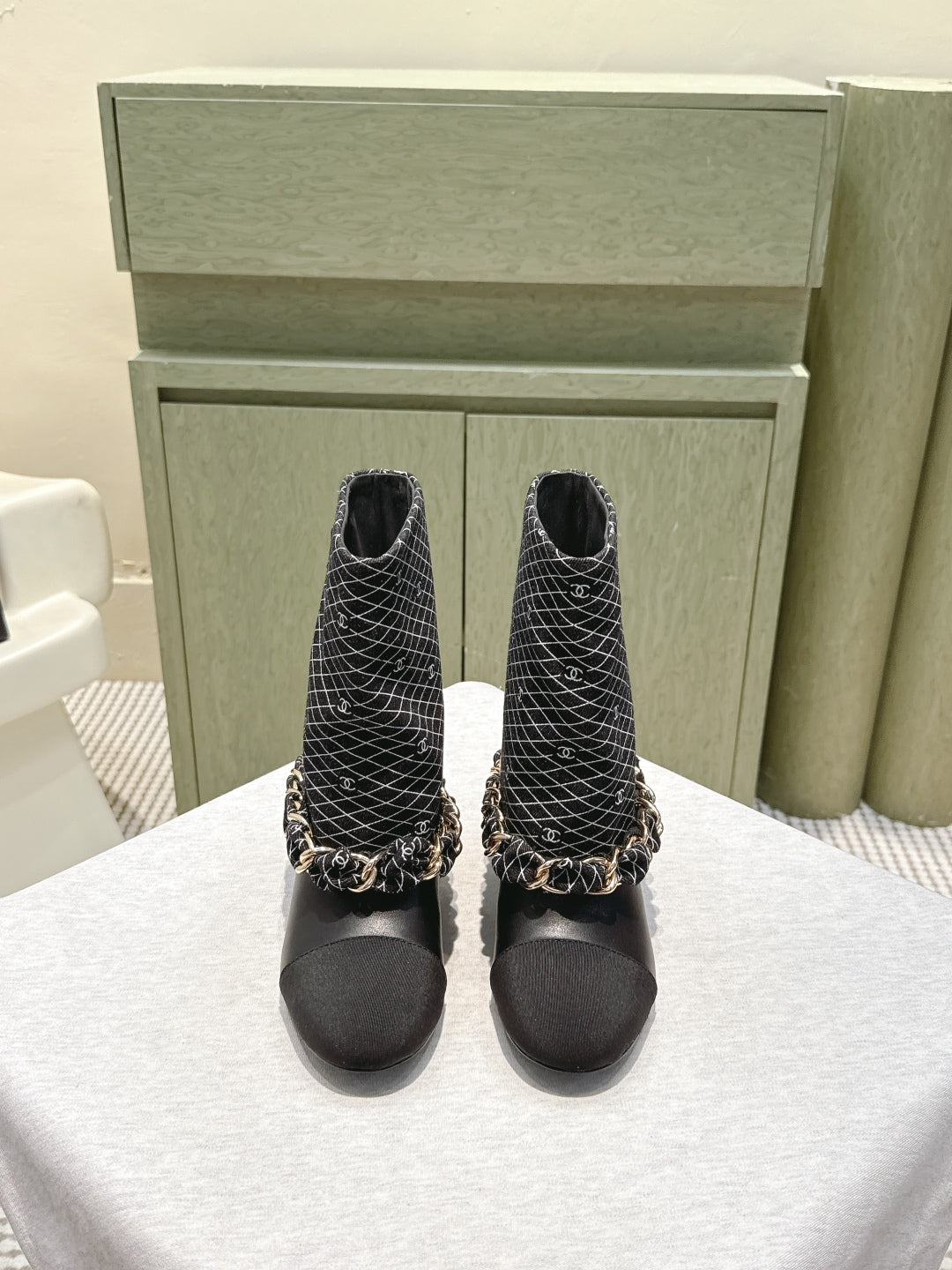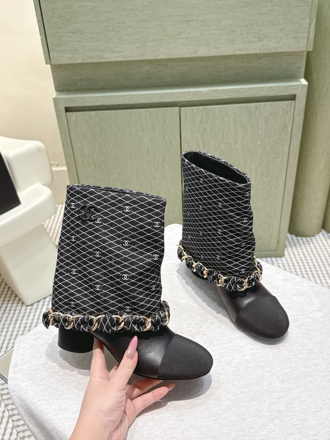 CC 25 Short Boot Black Denim Fabric Calfskin 515267