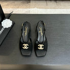 CC 25S Sandal Heel 50mm Black Suede Kidskin Pearl Logo