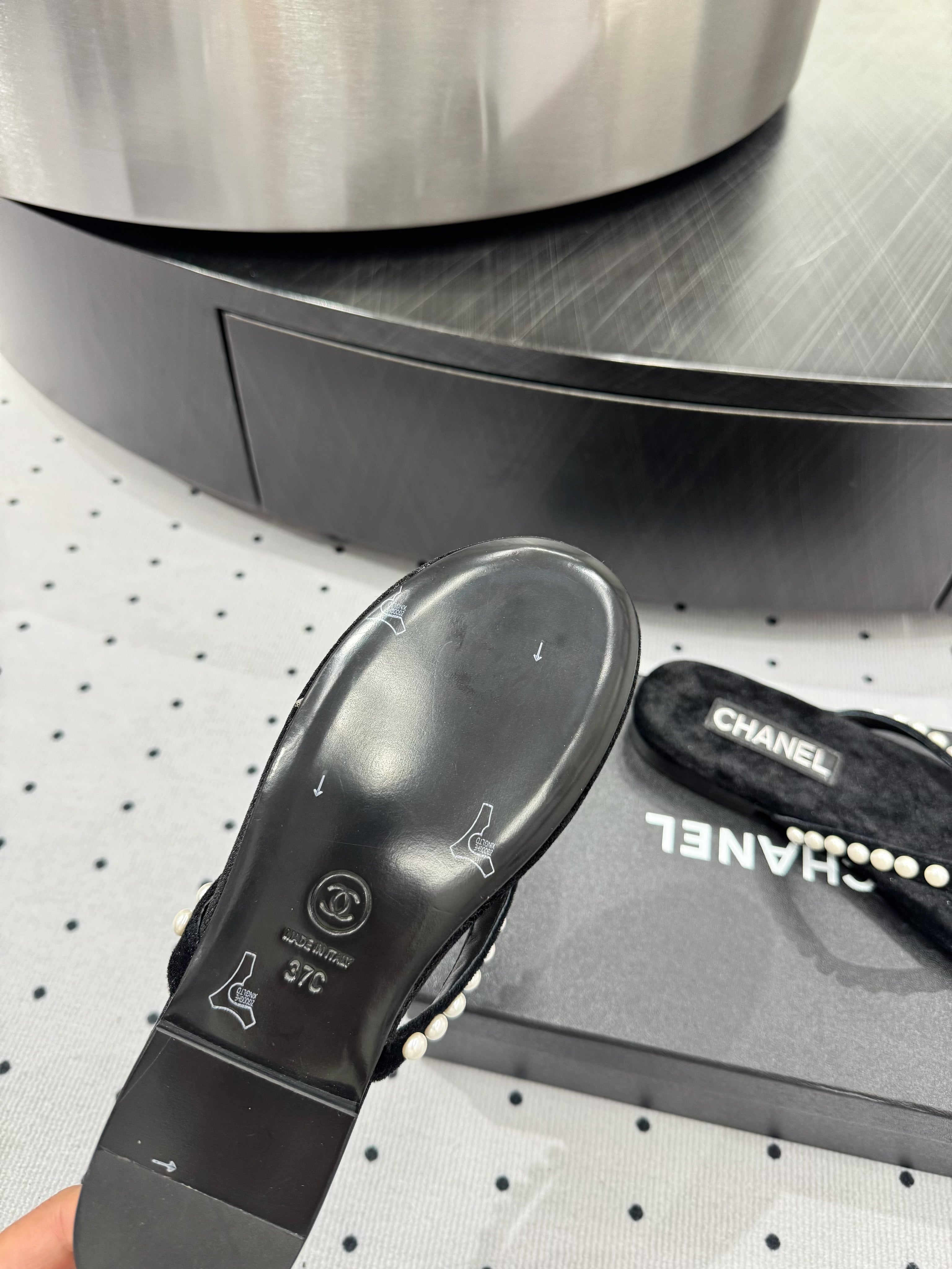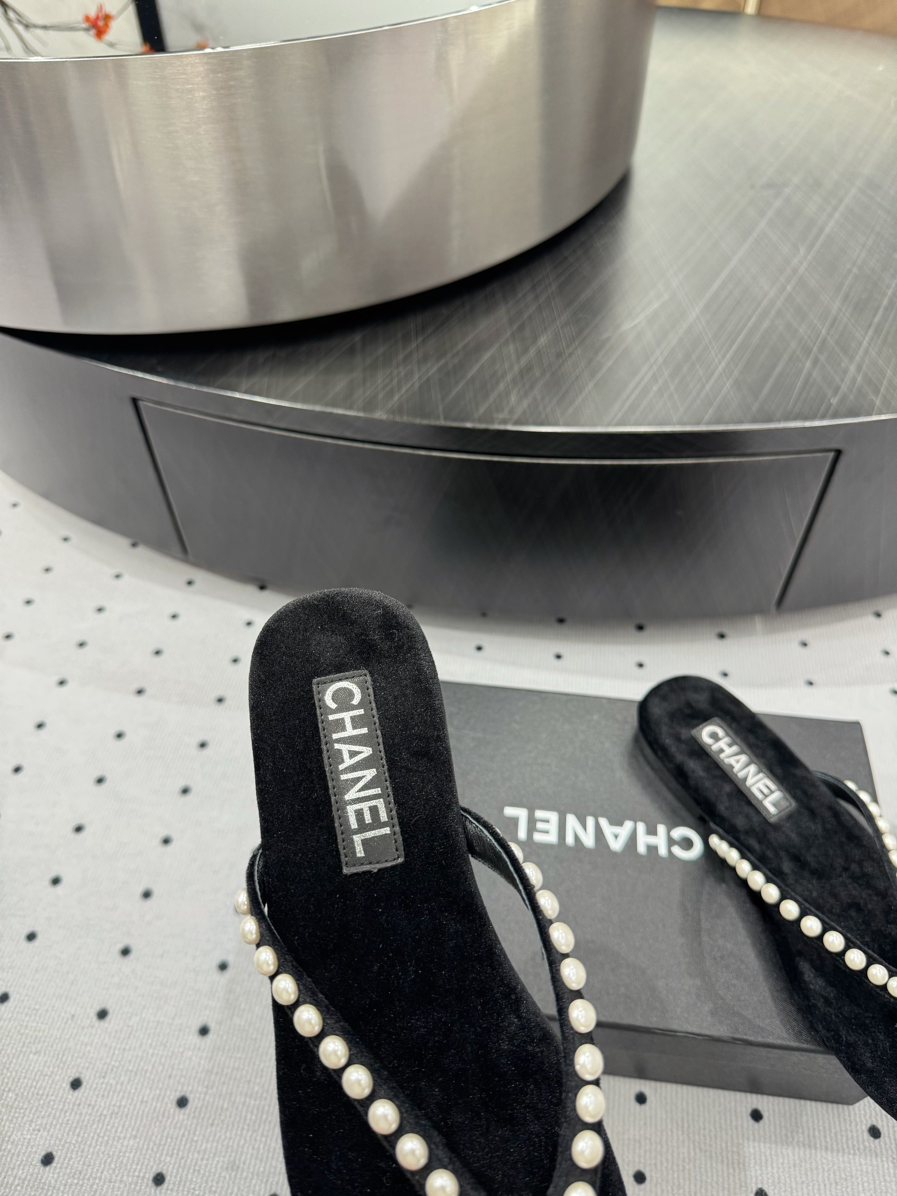 CC Thong Slippers Black Velet Pearl
