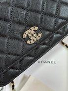 CC 25P Wallet On Chain 19cm Black Cowhide Heart Rhinestone 243601