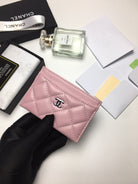 CC CARD HOLDER 11.2 BABY PINK CALFSKIN SILVER ICON