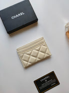 CC CARD HOLDER 11.2 CREAM GRAINED CALFSKIN GOLD ICON