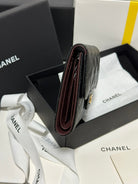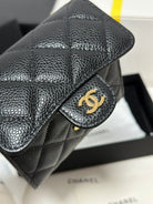 CC CClassic Small Flap Wallet Black Quilted Caviar Gold Buckle 243686