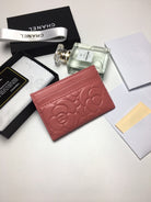 CC FLORAL CARD HOLDER 11.2 CORAL CALFSKIN SILVER ICON