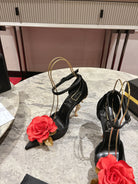 CL 25 Flower Bellarose Black Satin Fabric 346061