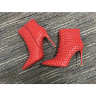 CL Snakilta Spiked Ankle Boots 100mm Calf Leather Red