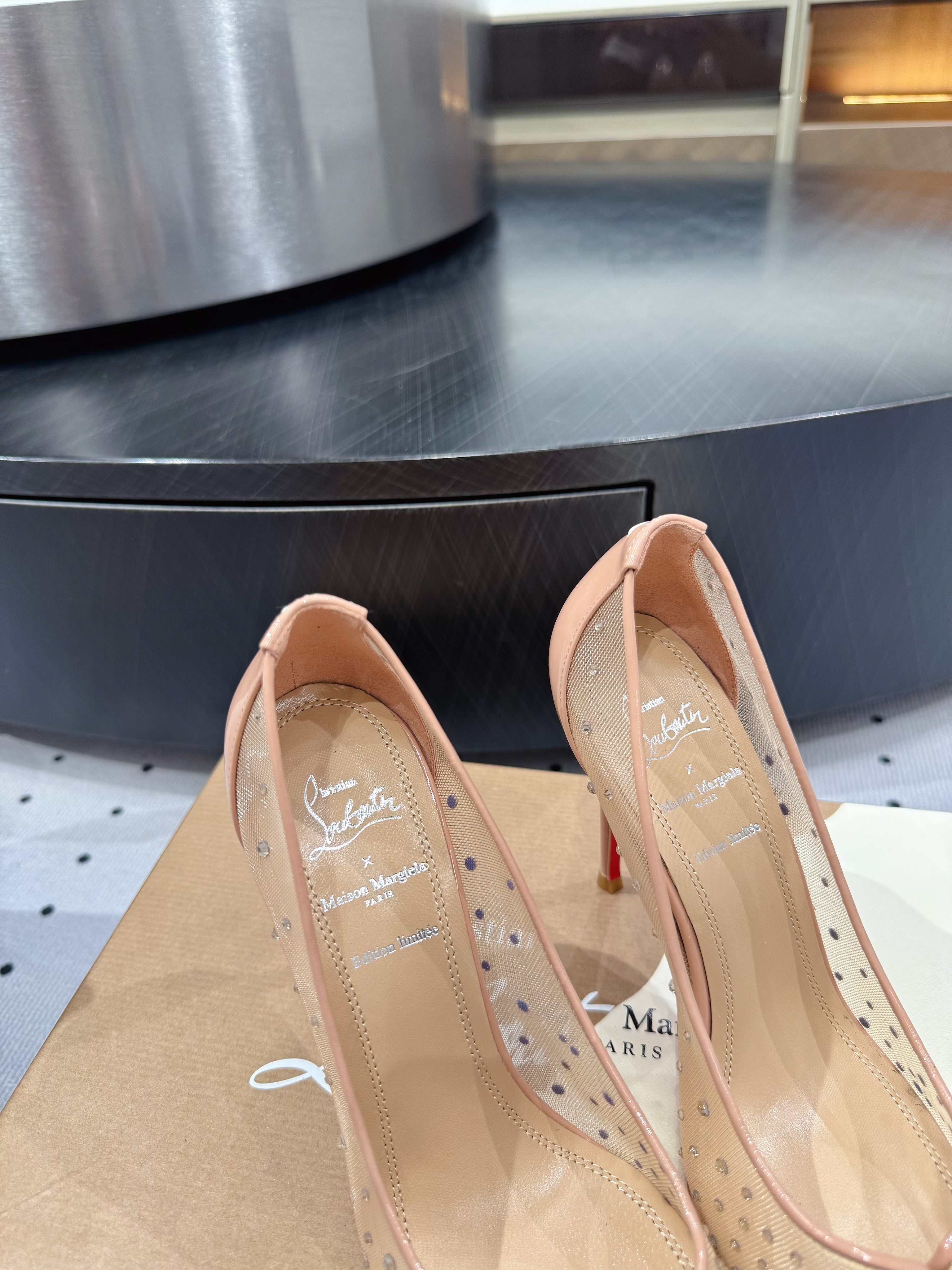 CL x Margiela 25 Diamond Pumps Beige Fabric Lace Swarovski 296040