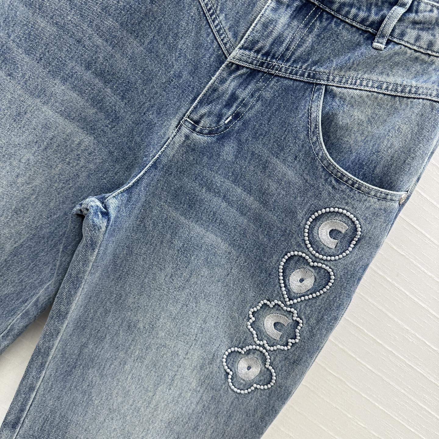 CC 25 Embroidered Pant Blue Denim Cotton