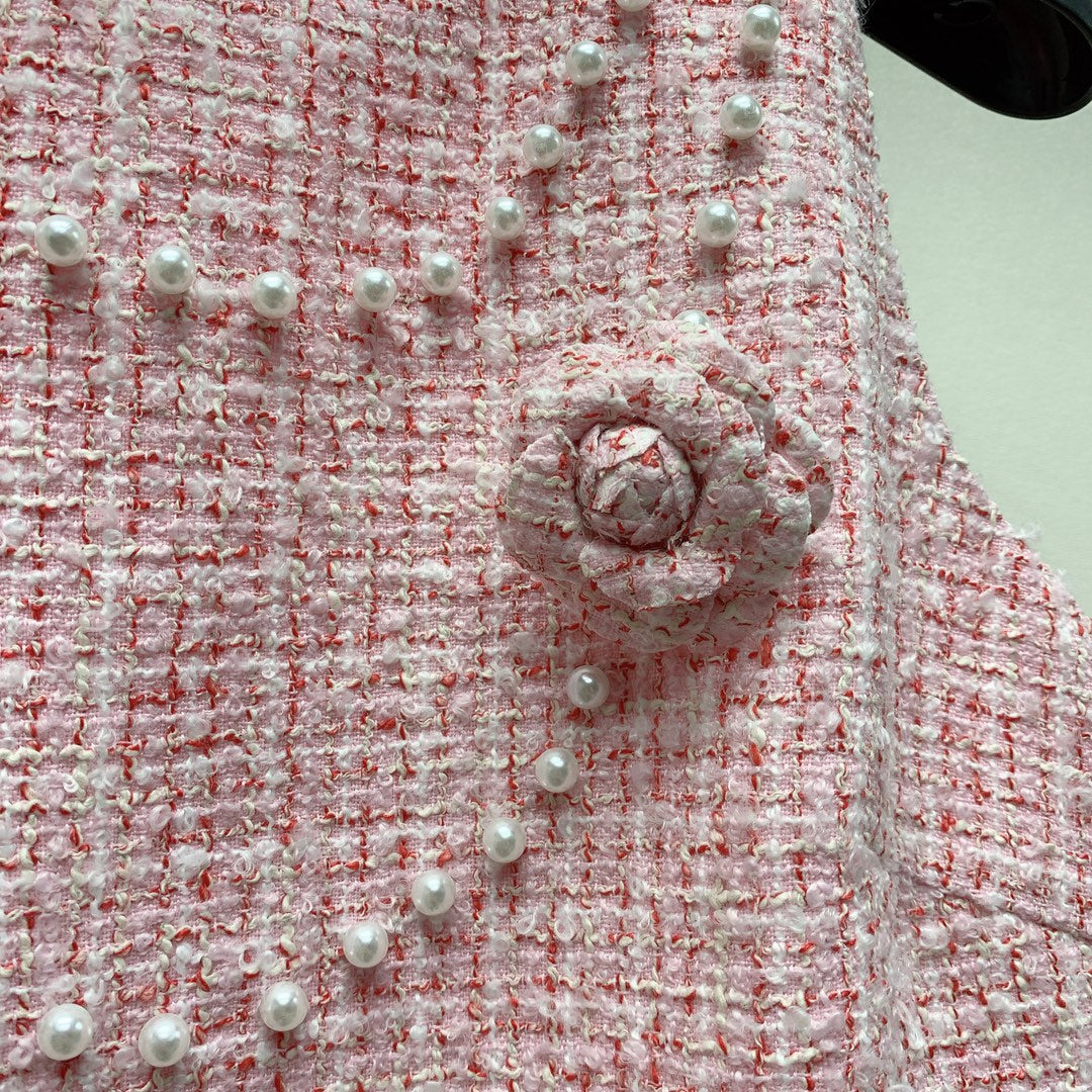CC 25 Flower Woven Dress Tweed Pink Polyester Cotton 257307