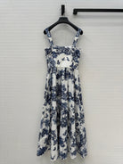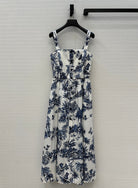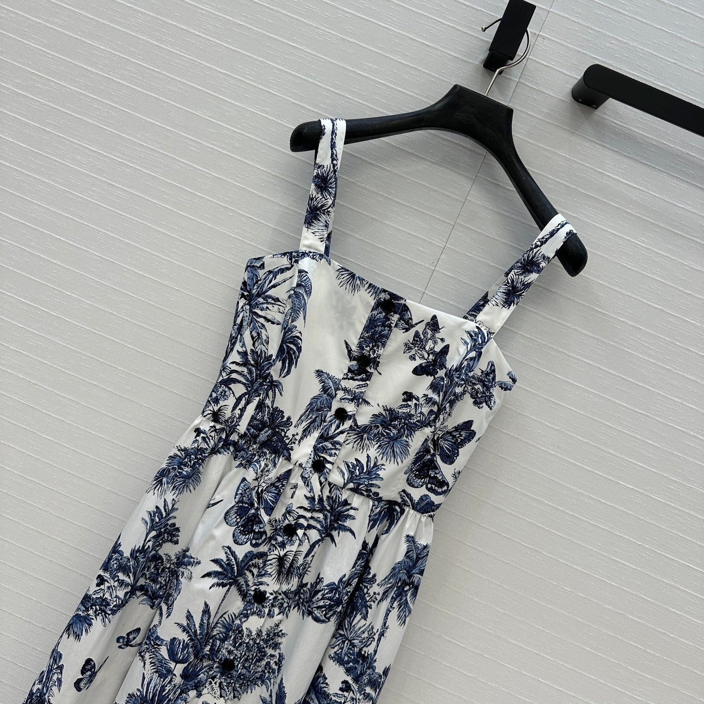 CD 25 Butterfly Coconut Print Tube Dress White Blue Cotton