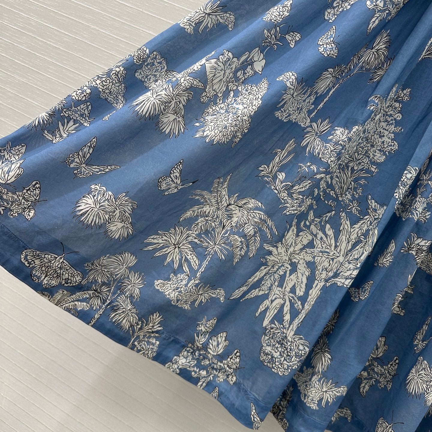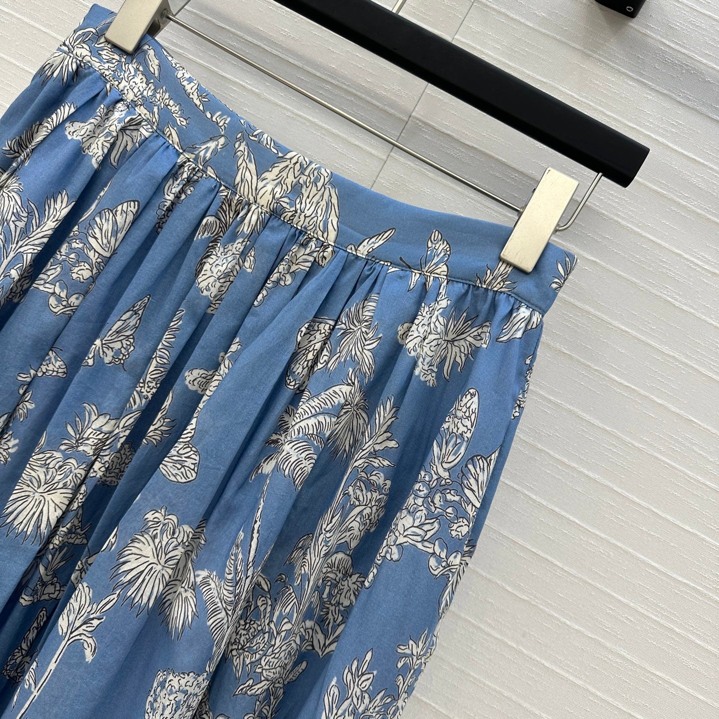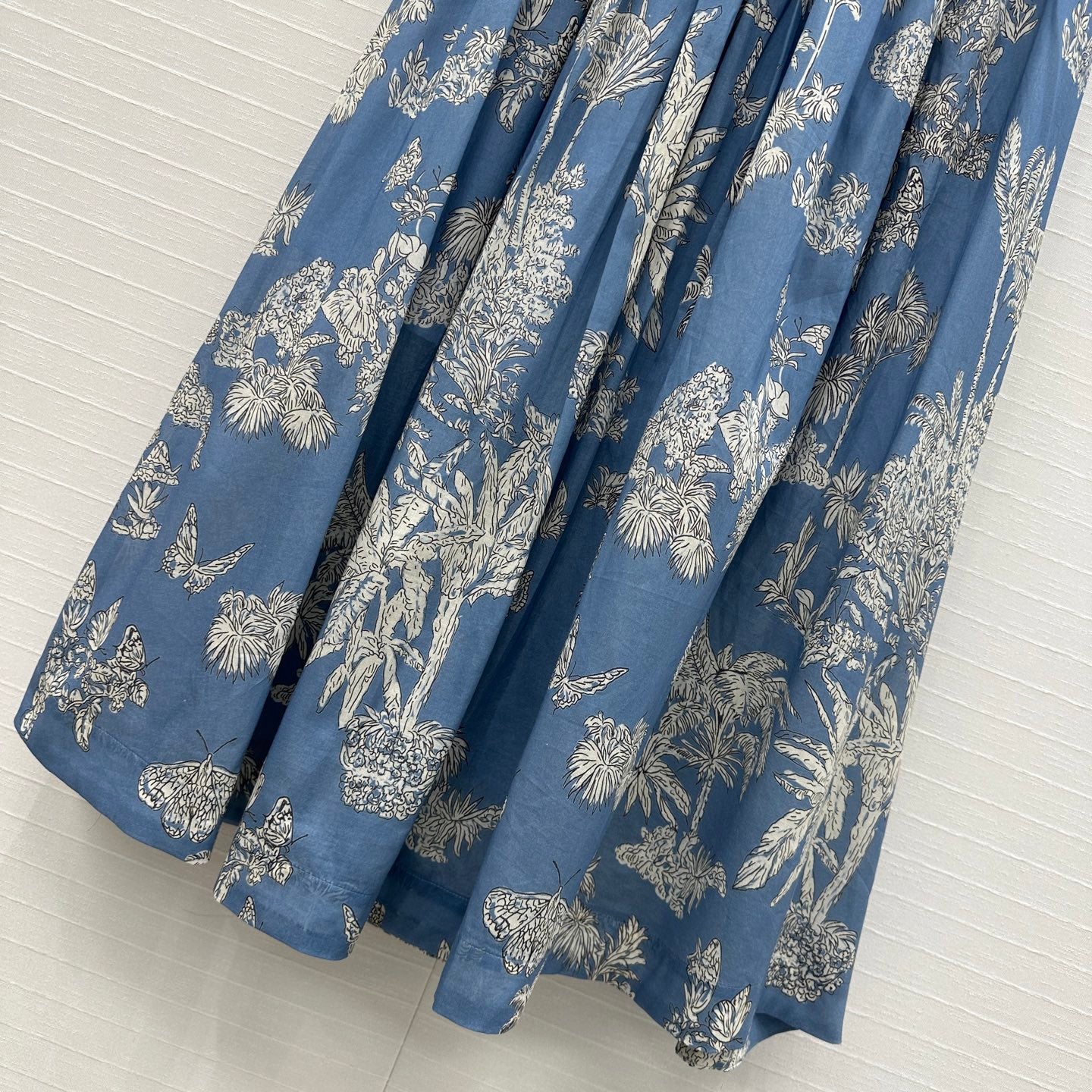 CD 25 Pleated Flared Forest Long Skirt Blue White Cotton