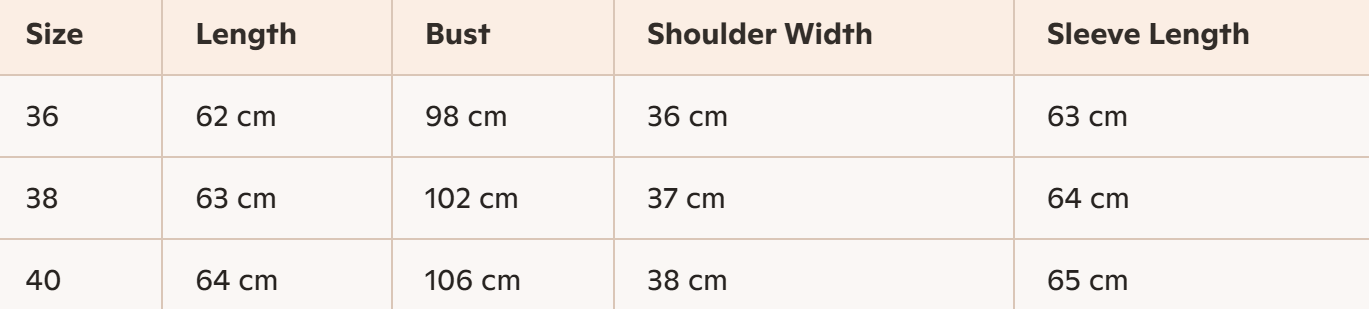 - Size : 36, 38, 40