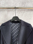 CD Hooded Long Coat Black Wool Silk