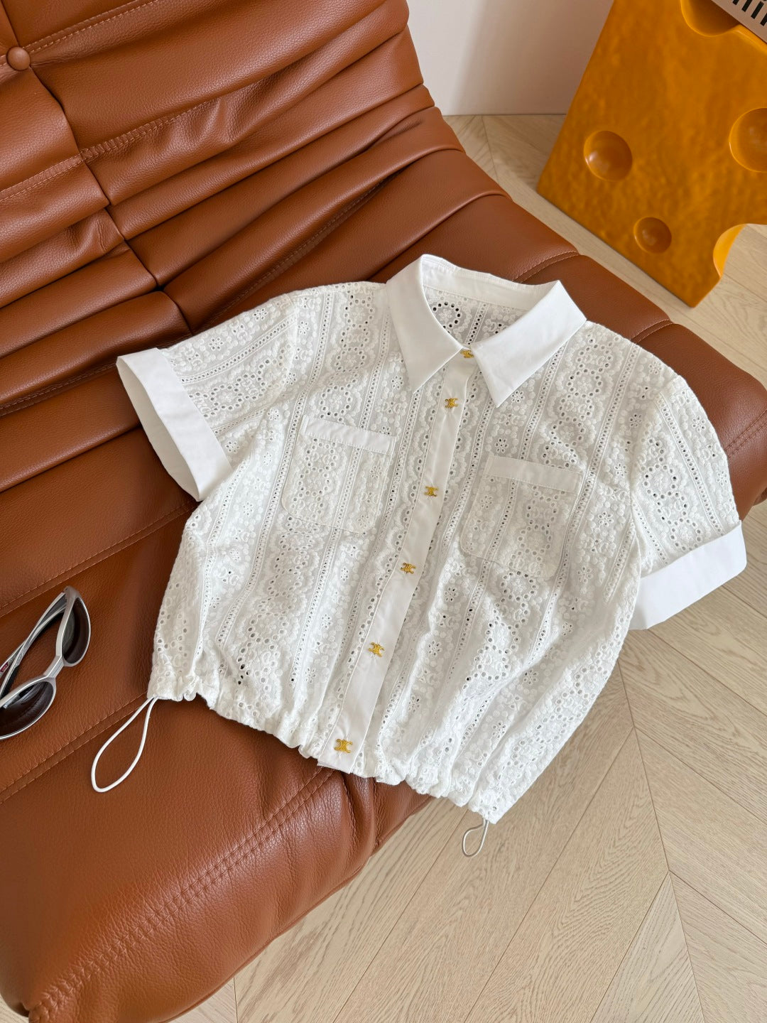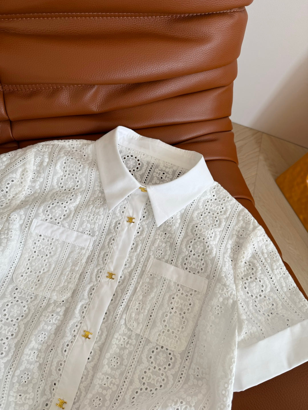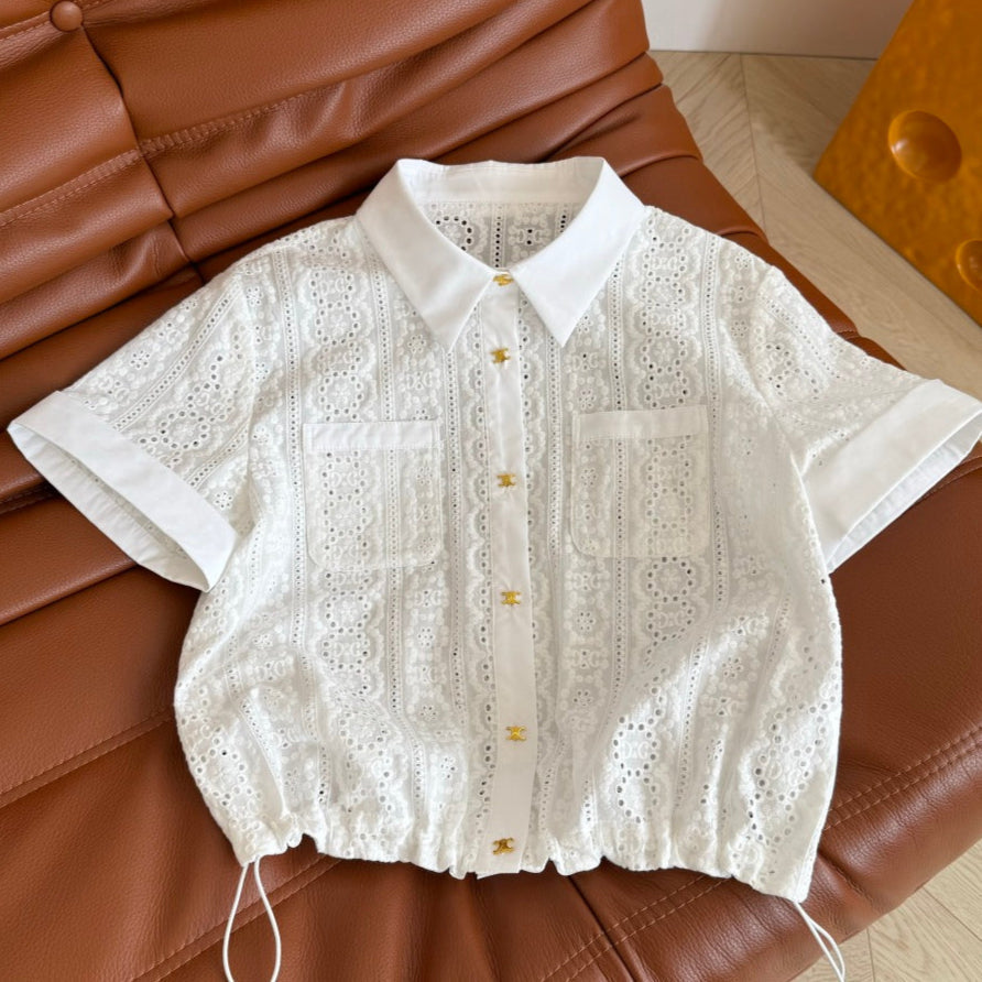 Celine 25 Hollow Wide Shoulder with Gold Metal Button White Cotton