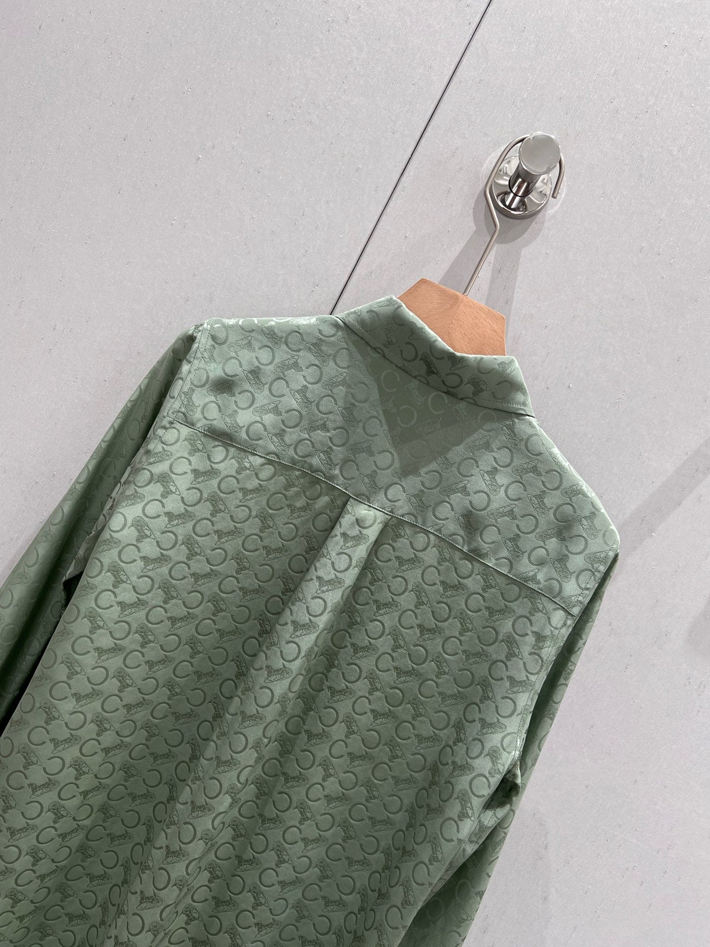 Celine 25 Monogram T-shirt Green Jacquard Silk 210347
