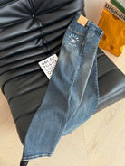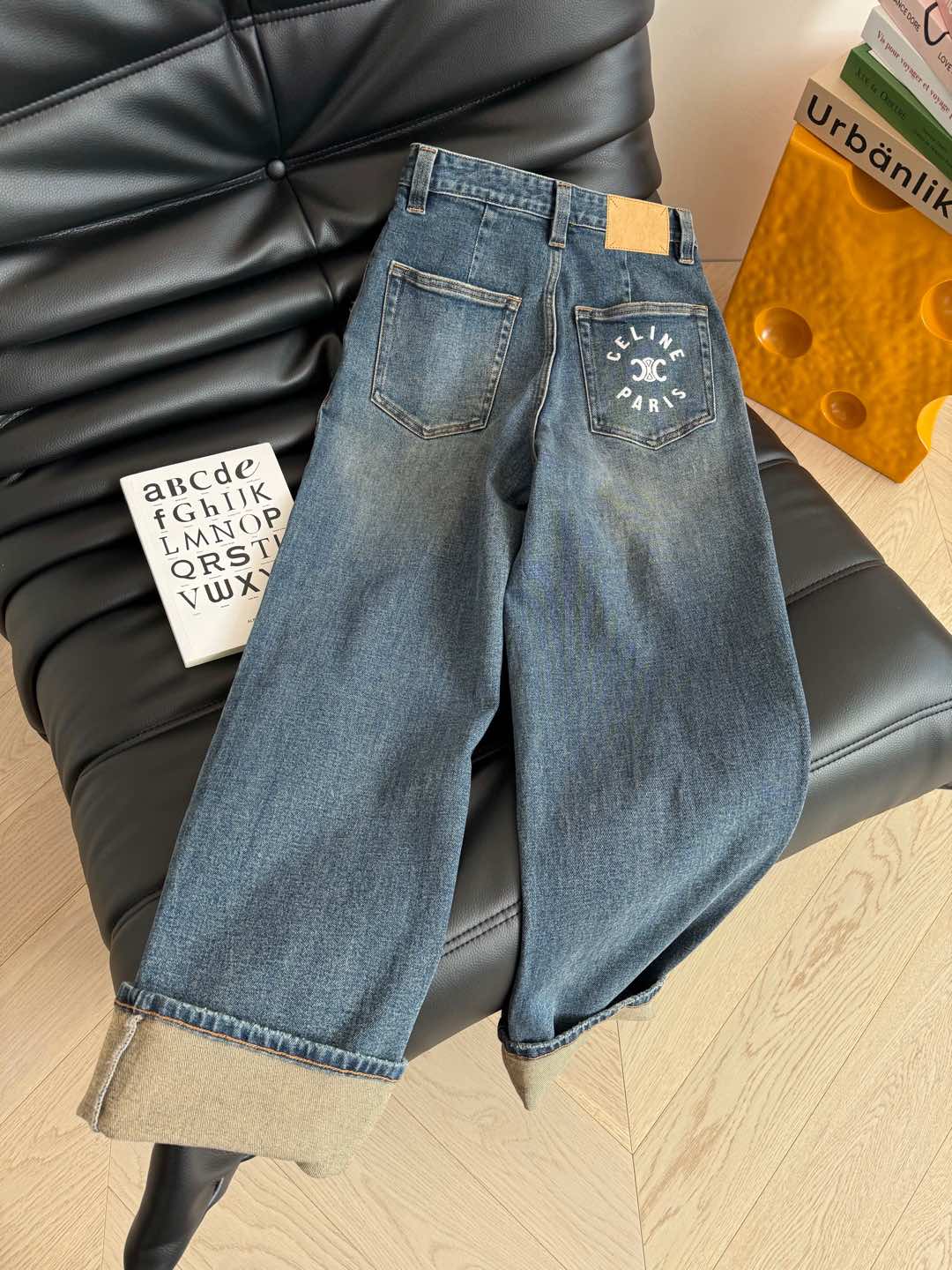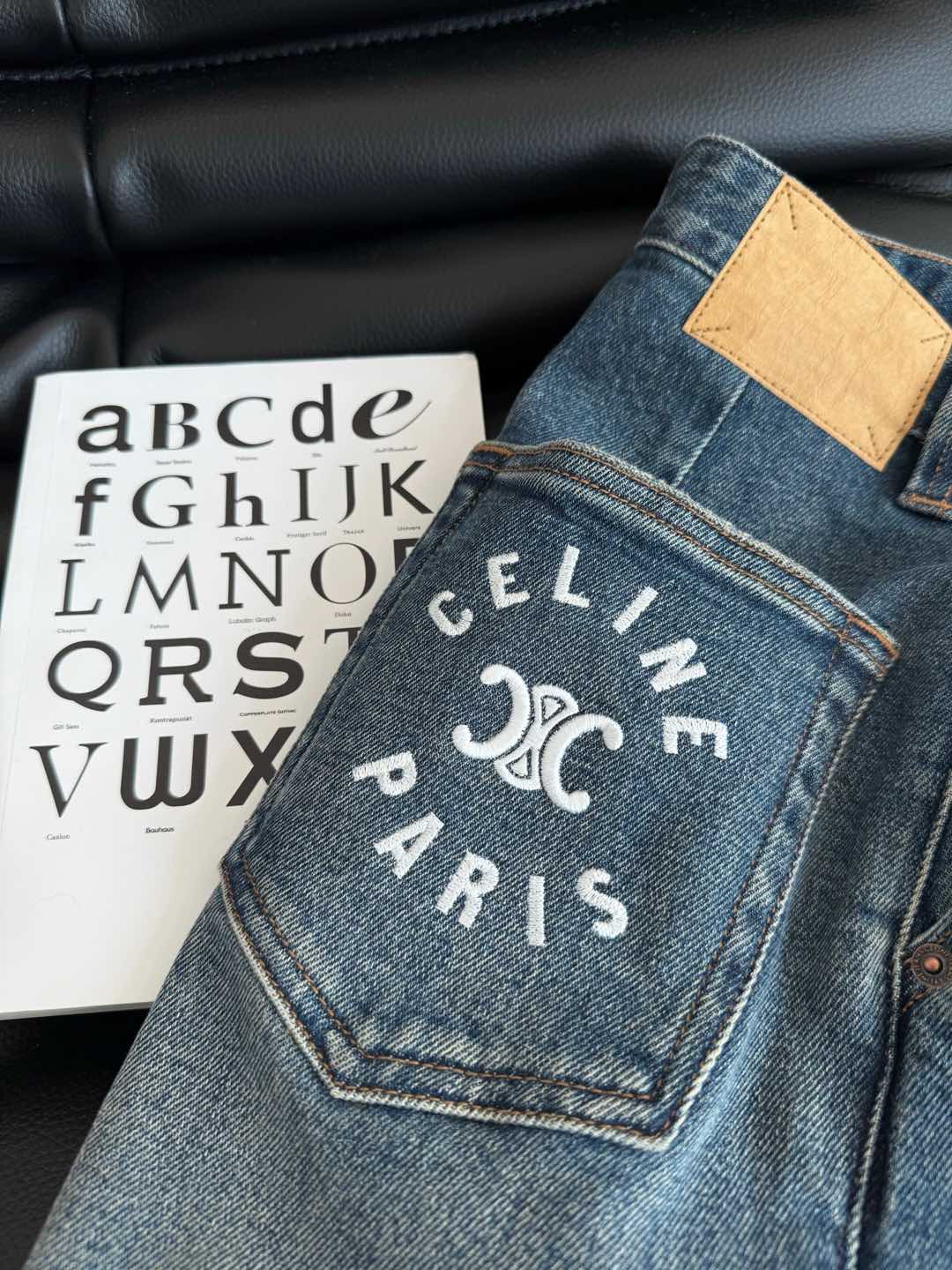 Celine 25 Pattern Embroidered Straight Jeans Blue Cotton