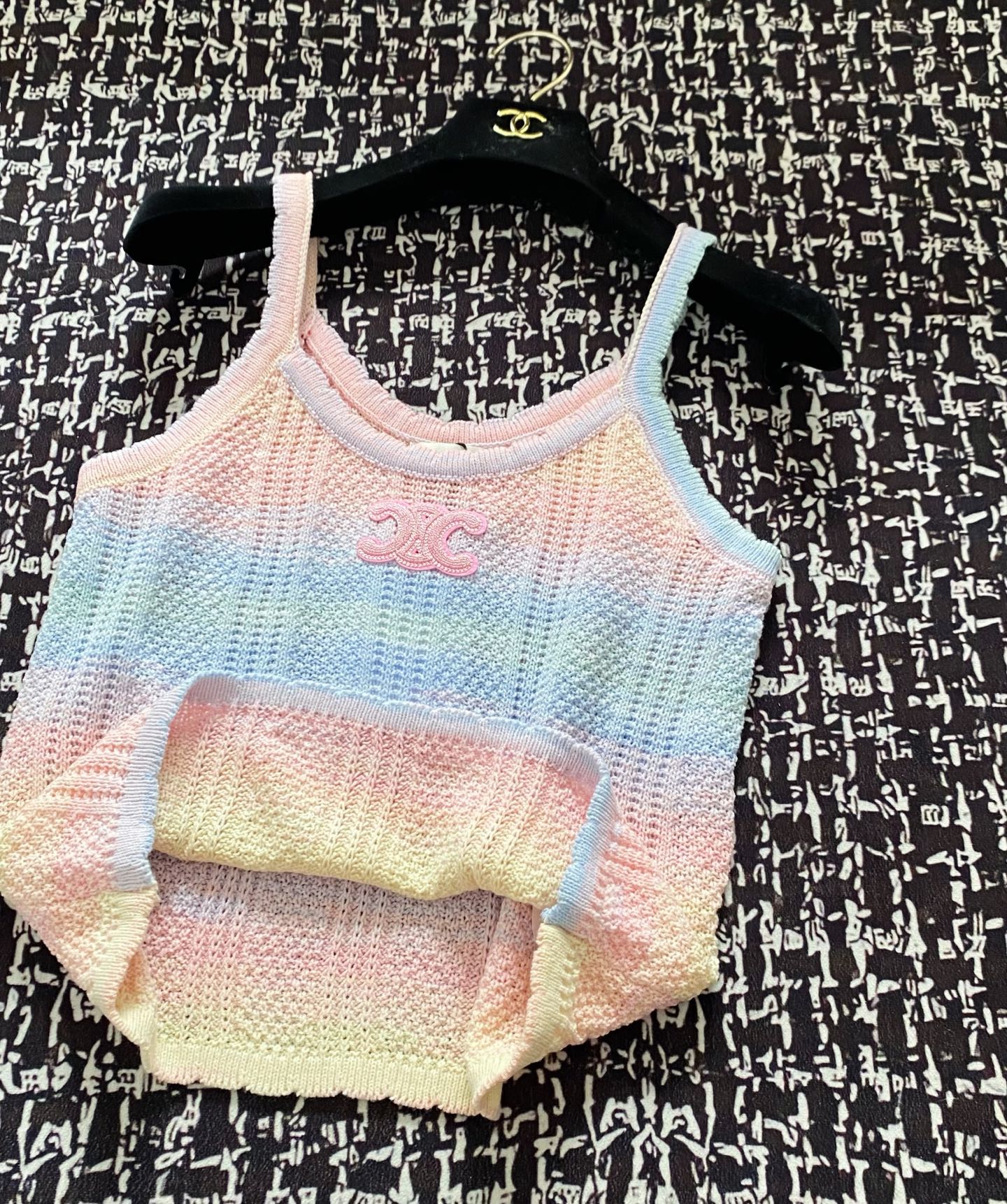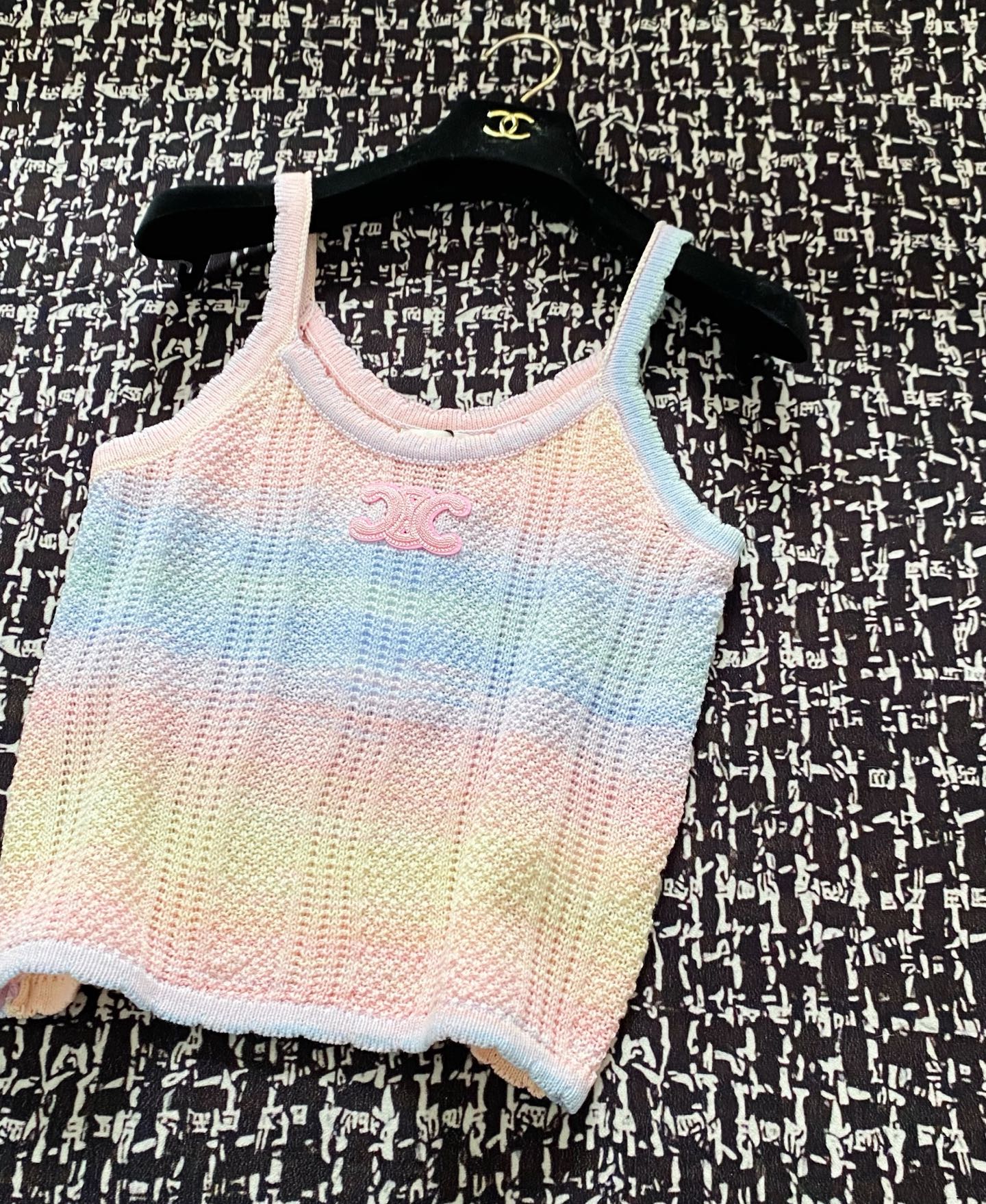 Celine 25 Sleeveless Knitted Top Pastel Colorful Wool