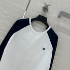 Celine Arc de Triomphe long-sleeved T-shirt Navy Blue mix White Cotton