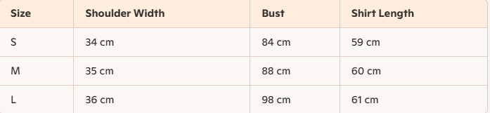 - Size : S,M,L
