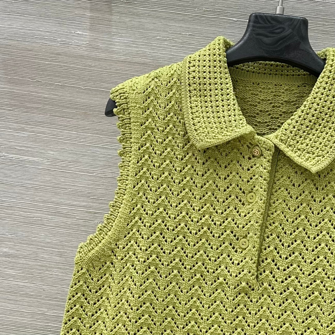 Gucci 25 Hollow Knitted Polo Vest Dress Avocado Green Polyester Fiber