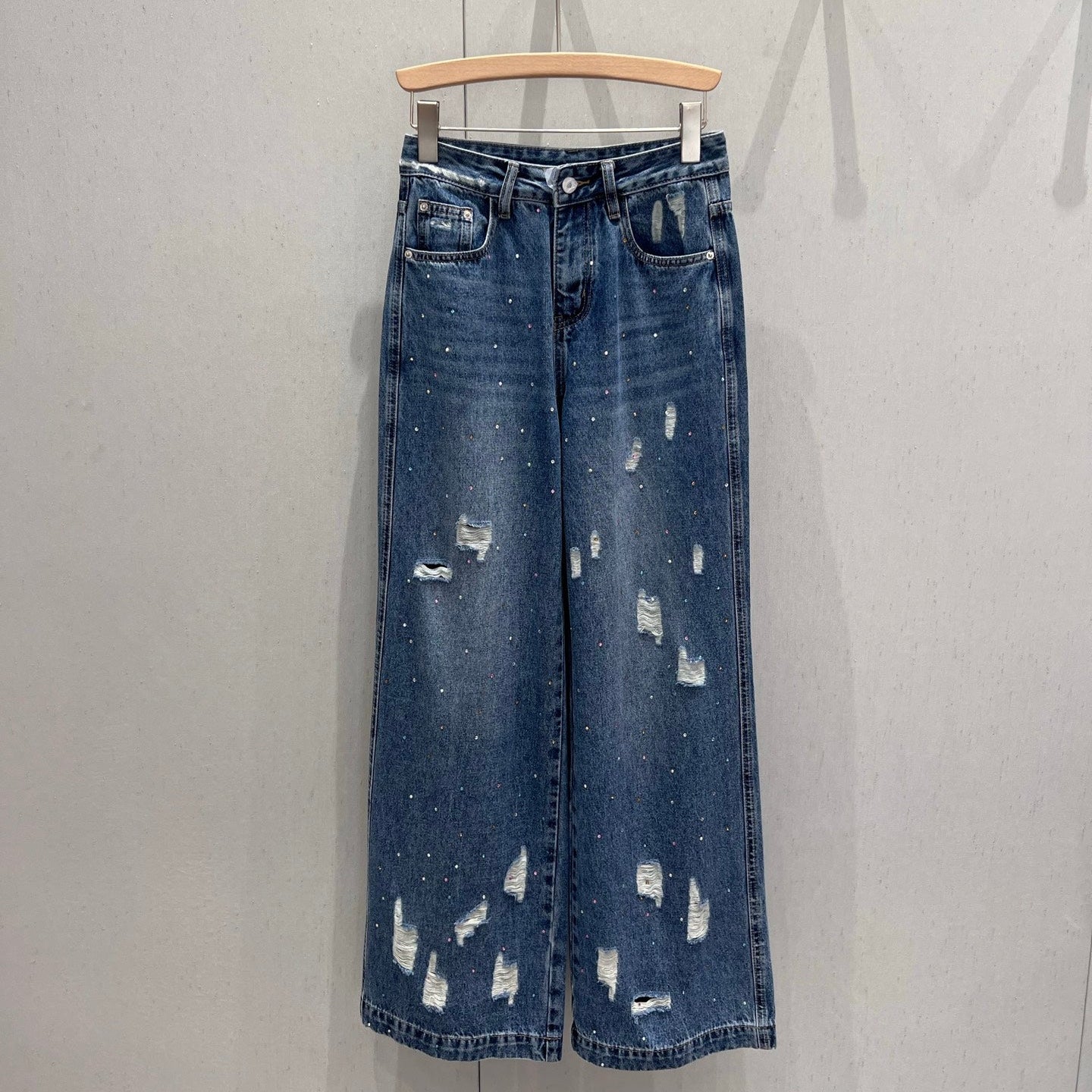 Loewe 25 Diamond Hole Straight Jeans Blue Cotton 217426