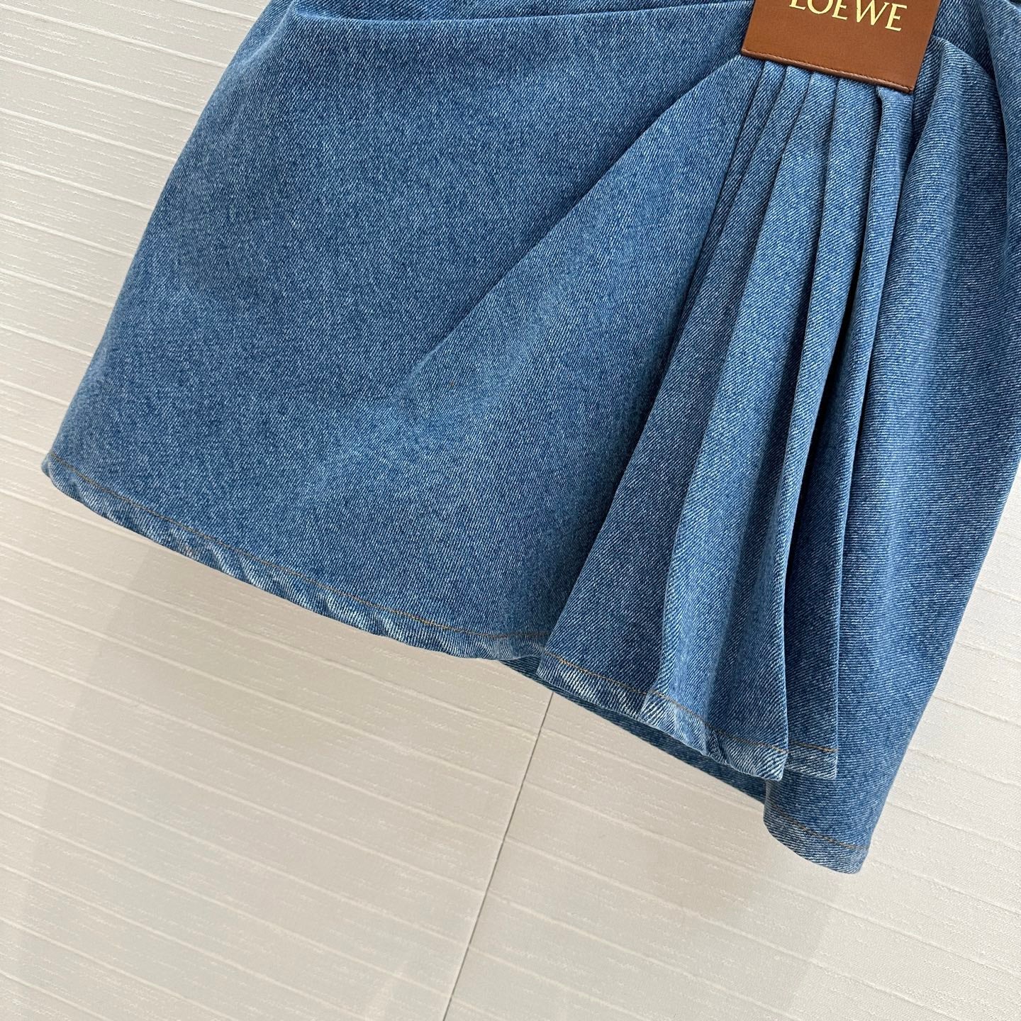 Loewe 25 Draped Denim Skirt Blue Cotton