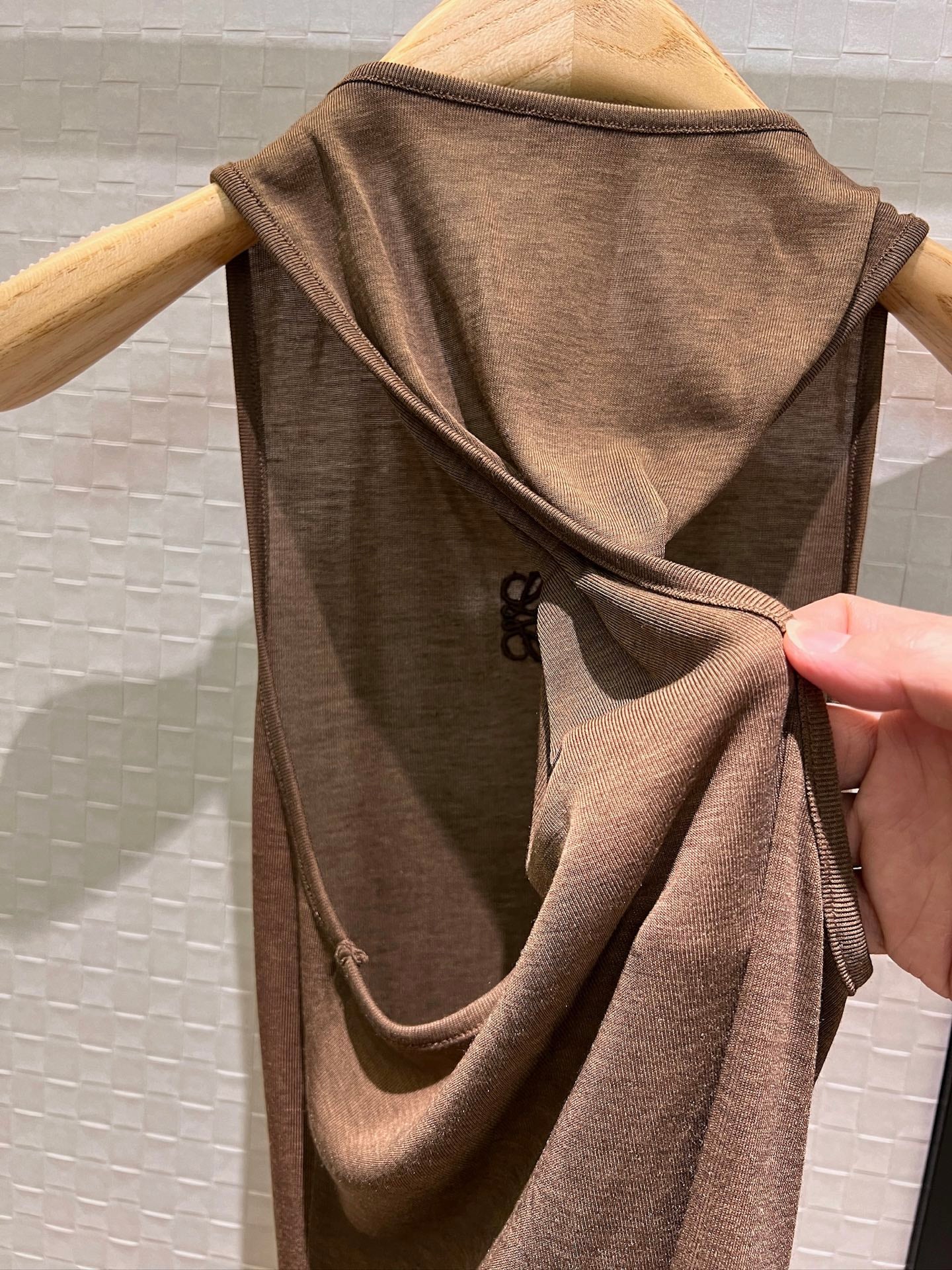 Loewe Embroidered Logo Knotted Vest Top Brown Polyester Fiber