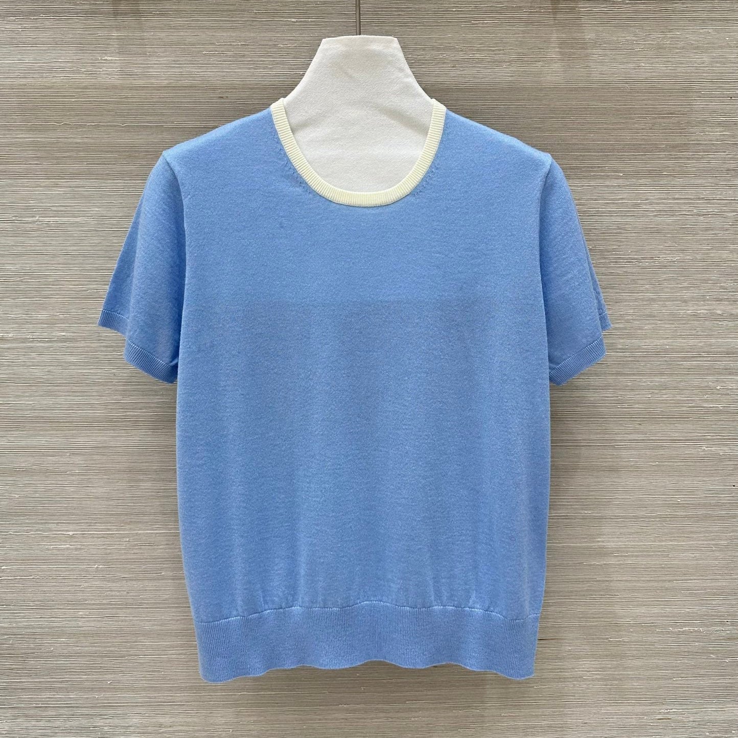 Miu Miu 25 Short-sleeve Top Blue Wool