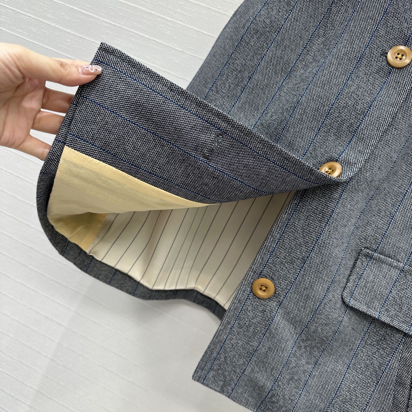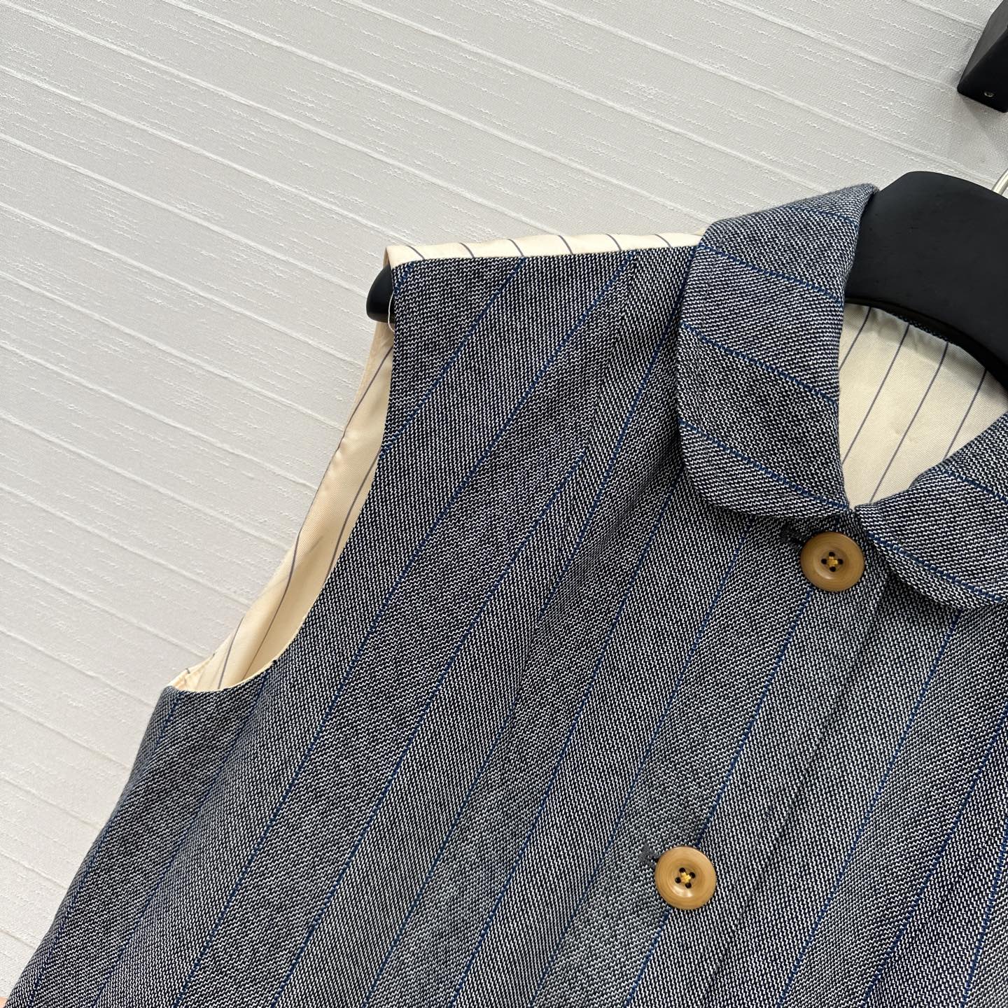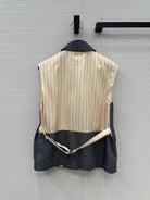 Prada 25 Striped Vest Jacket Grey Wool Cotton Polyester