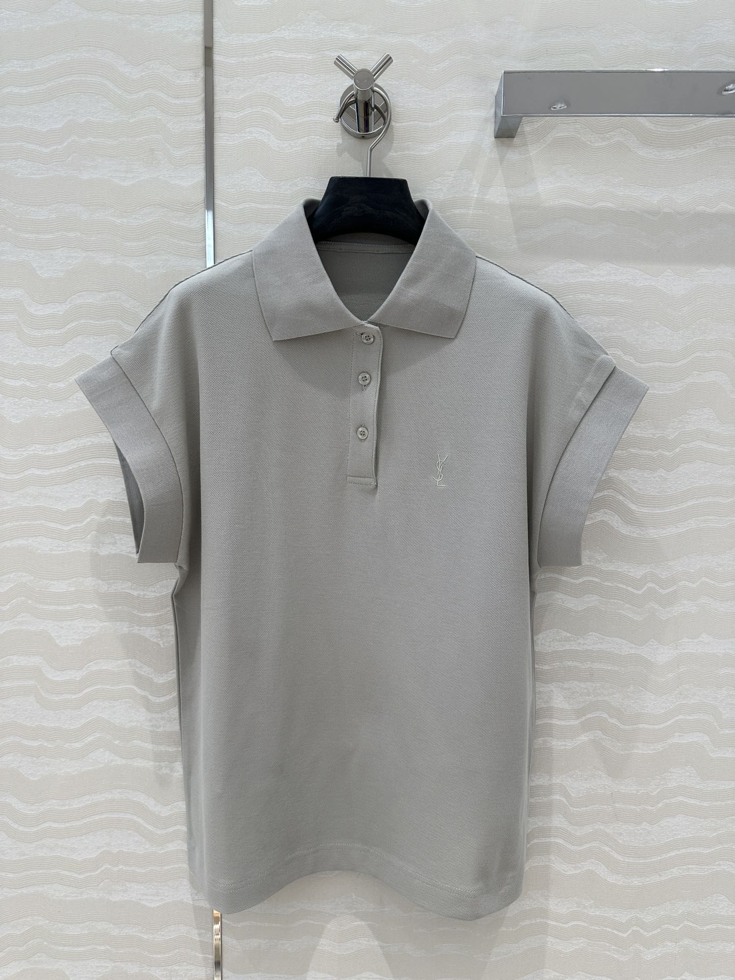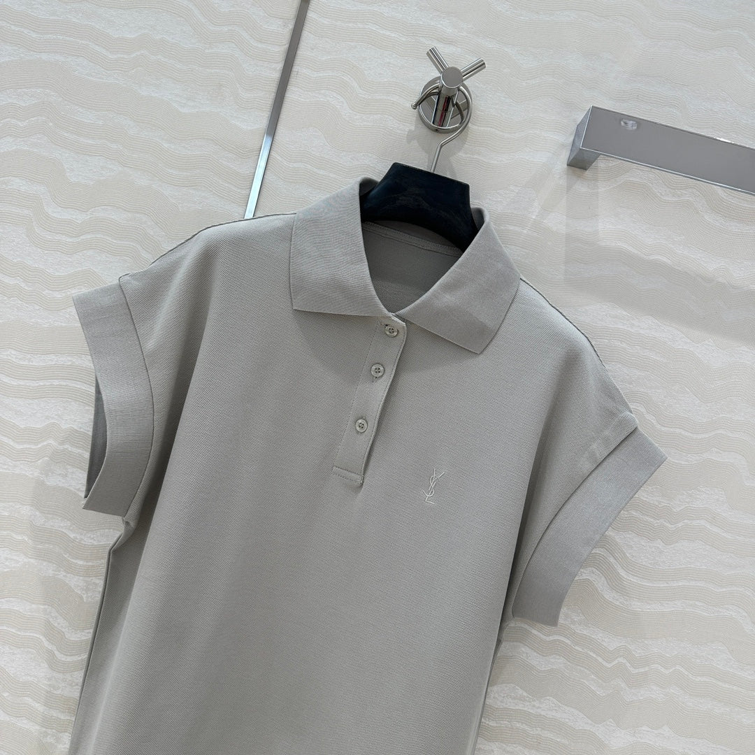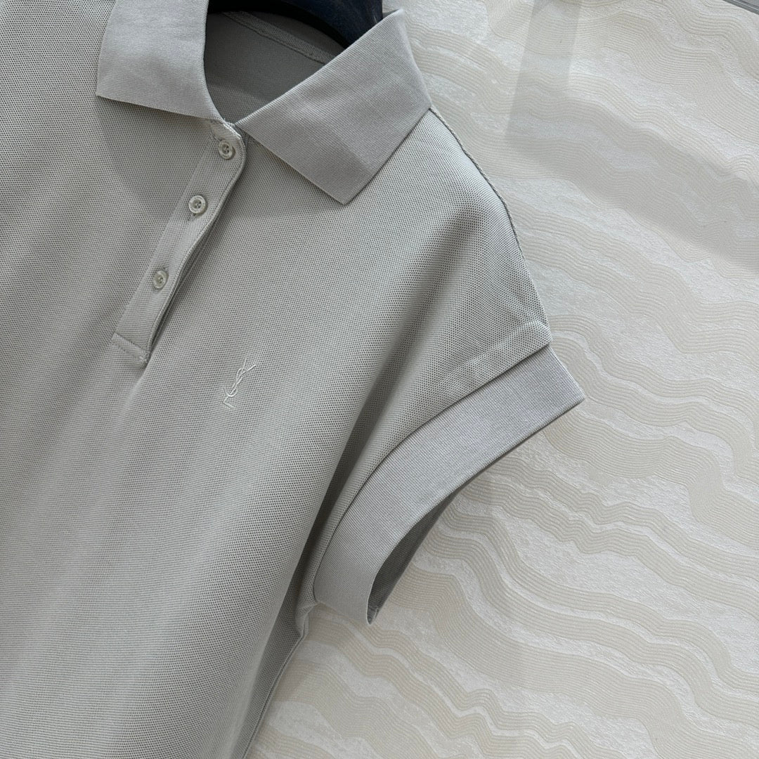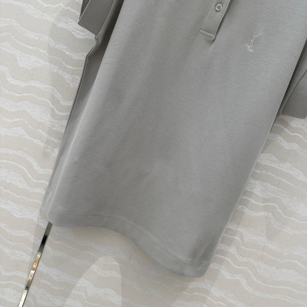 YSL Polo Collar T-shirt Gray Cotton Polyester