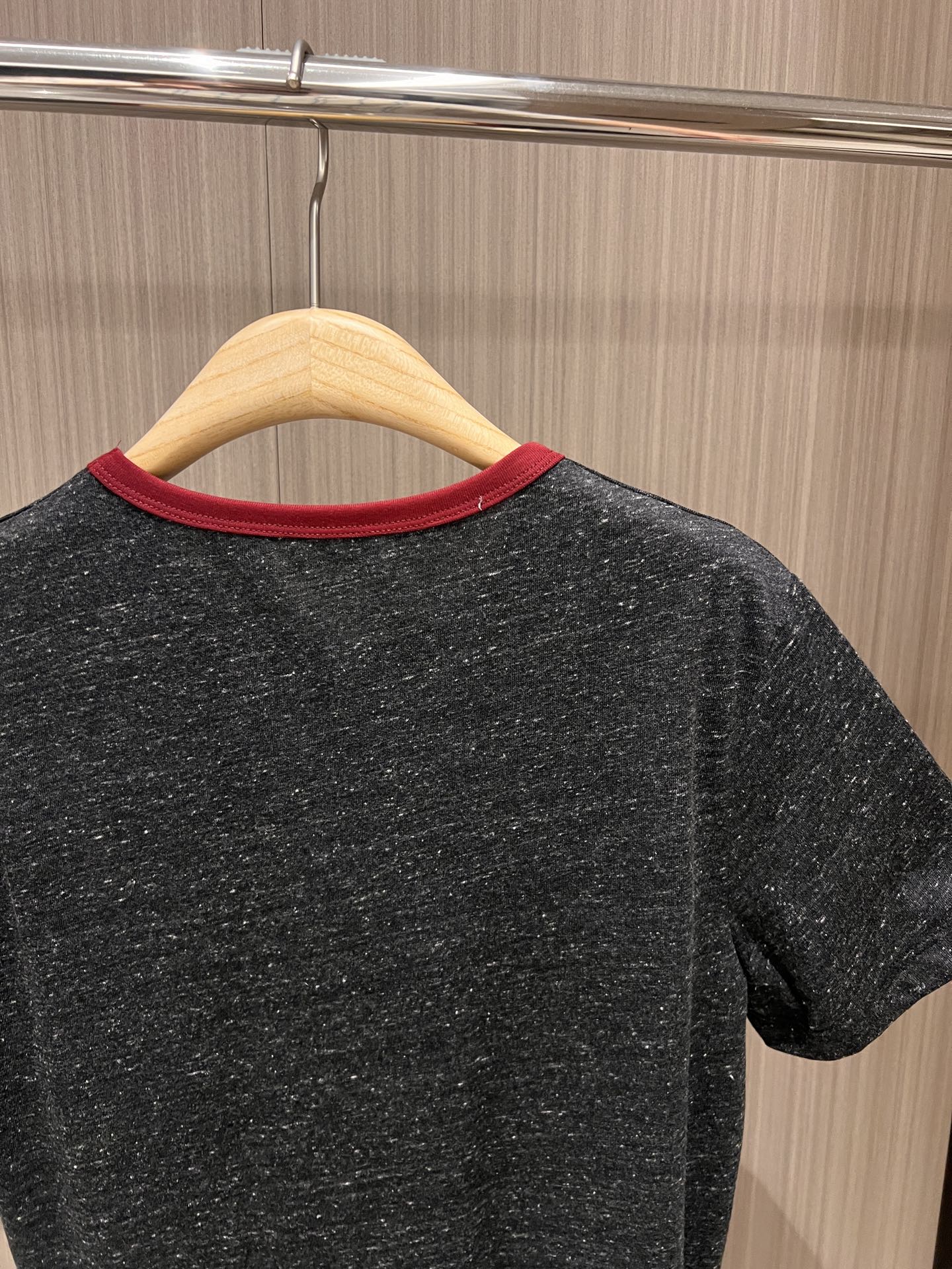 YSL Red Collar Logo Badge T-shirt Gray Cotton