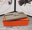 HM CLUTCH CONSTANCE 20.5 KHAKI CALFSKIN SILVER HARDWARE
