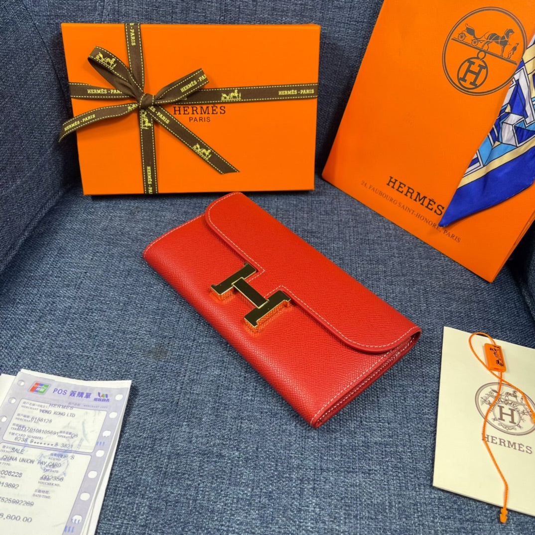 HM CLUTCH CONSTANCE 22 RED CALFSKIN GOLD HARDWARE