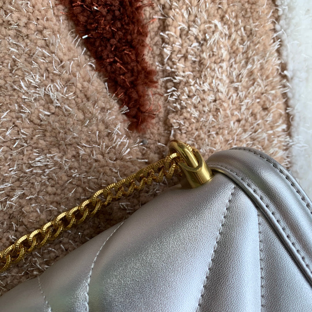 large devotion 26 shouder bag silver metalic cafskin